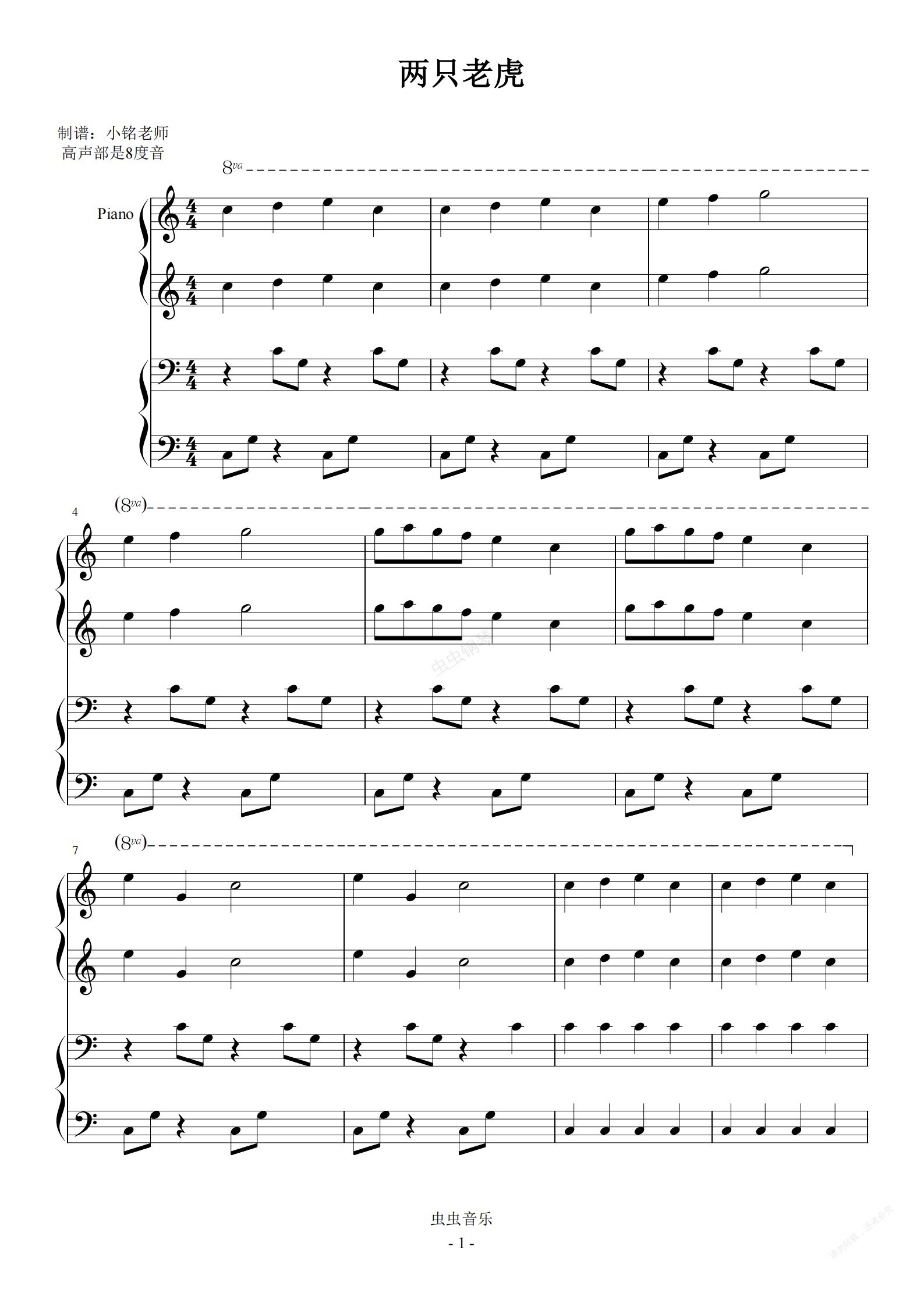 钢琴谱:两只老虎 【小汤3  四手联弹】