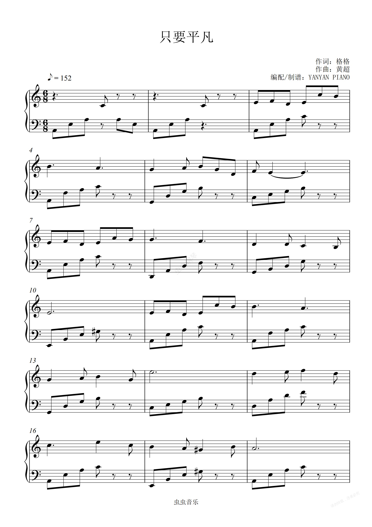 钢琴谱:我不是药神【只要平凡】张杰 张碧晨