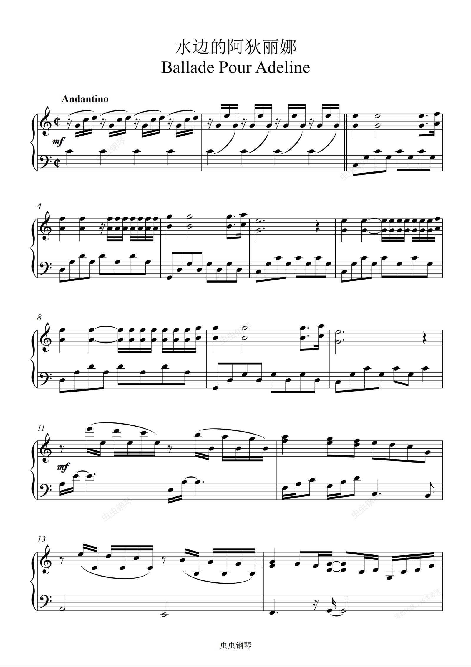 钢琴谱:水边的阿狄丽娜 理查德·克莱德曼