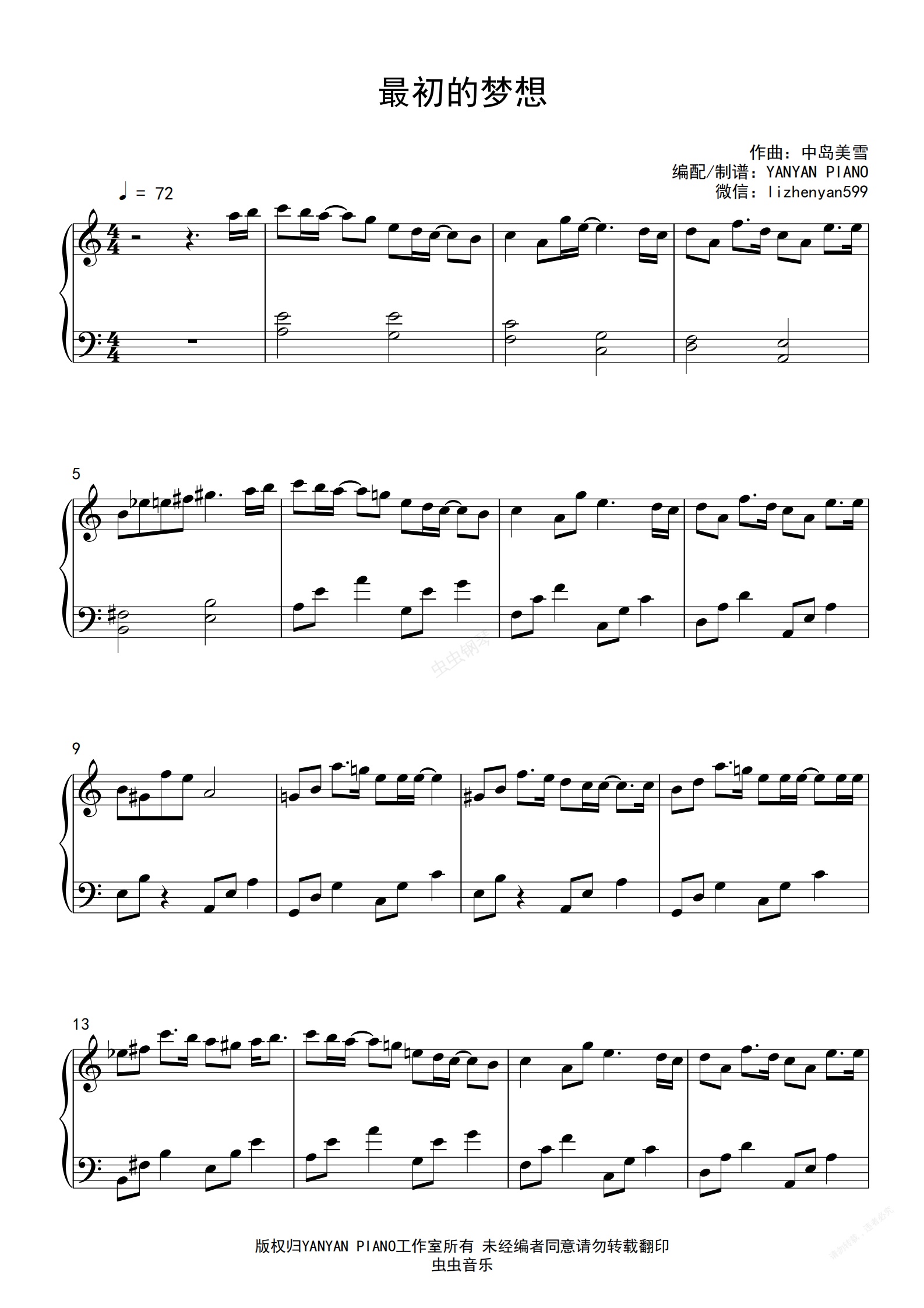 钢琴谱:中岛美雪【骑在银龙的背上】【最初的梦想】范玮琪