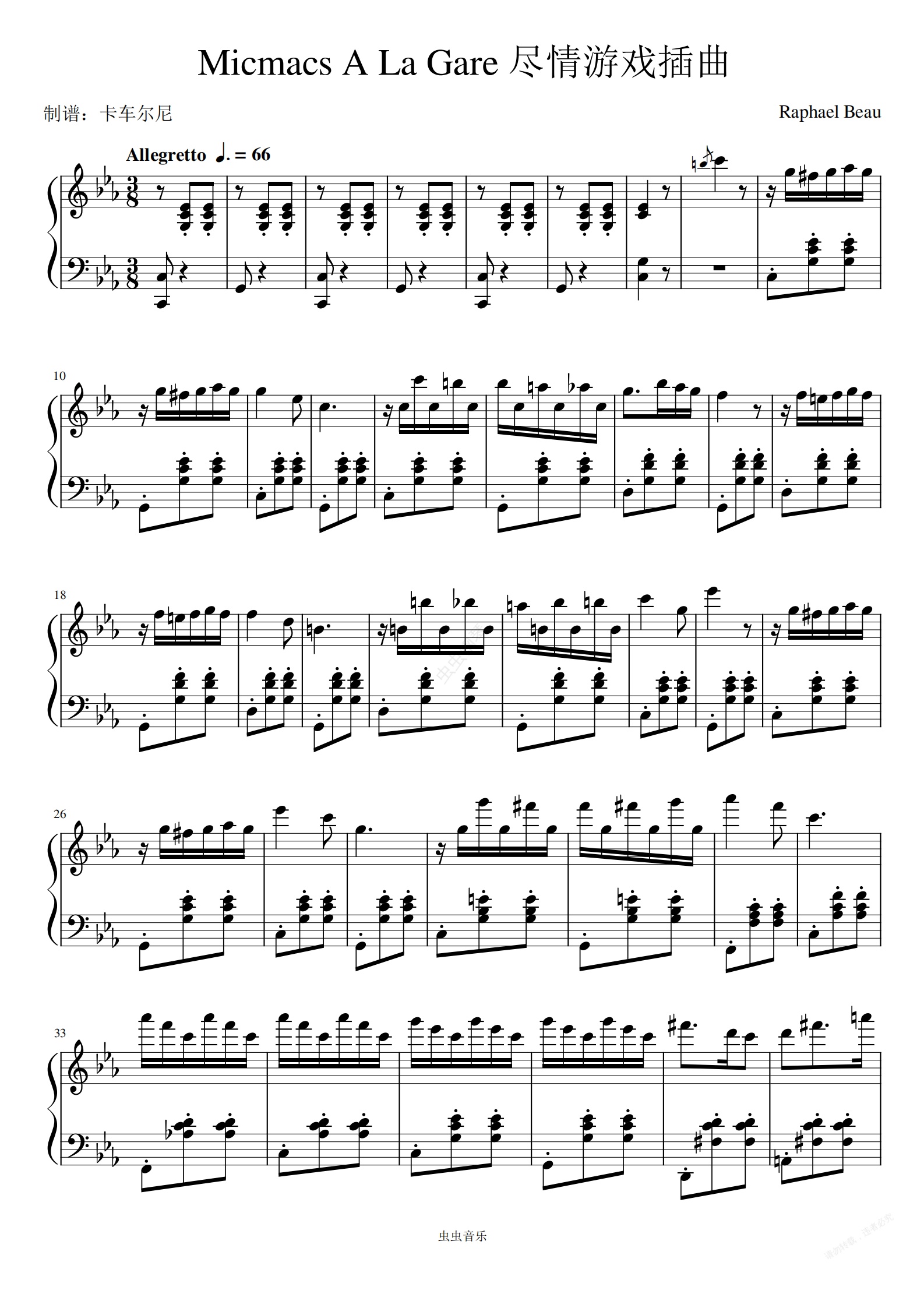 钢琴谱:尽情游戏插曲 micmacs a la gare 钢琴演奏版