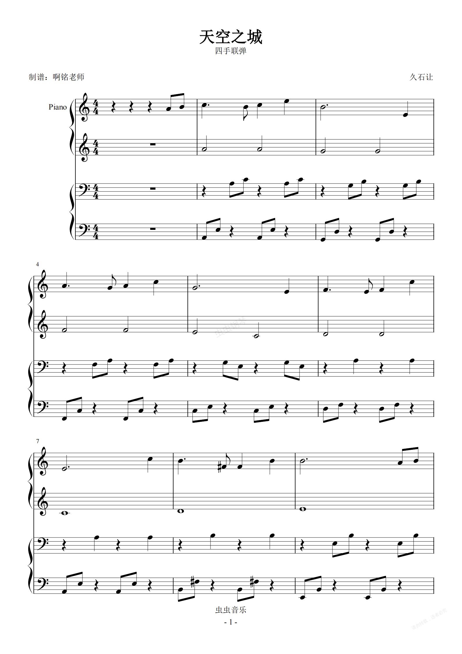 钢琴谱:天空之城【小汤3 四手联弹】