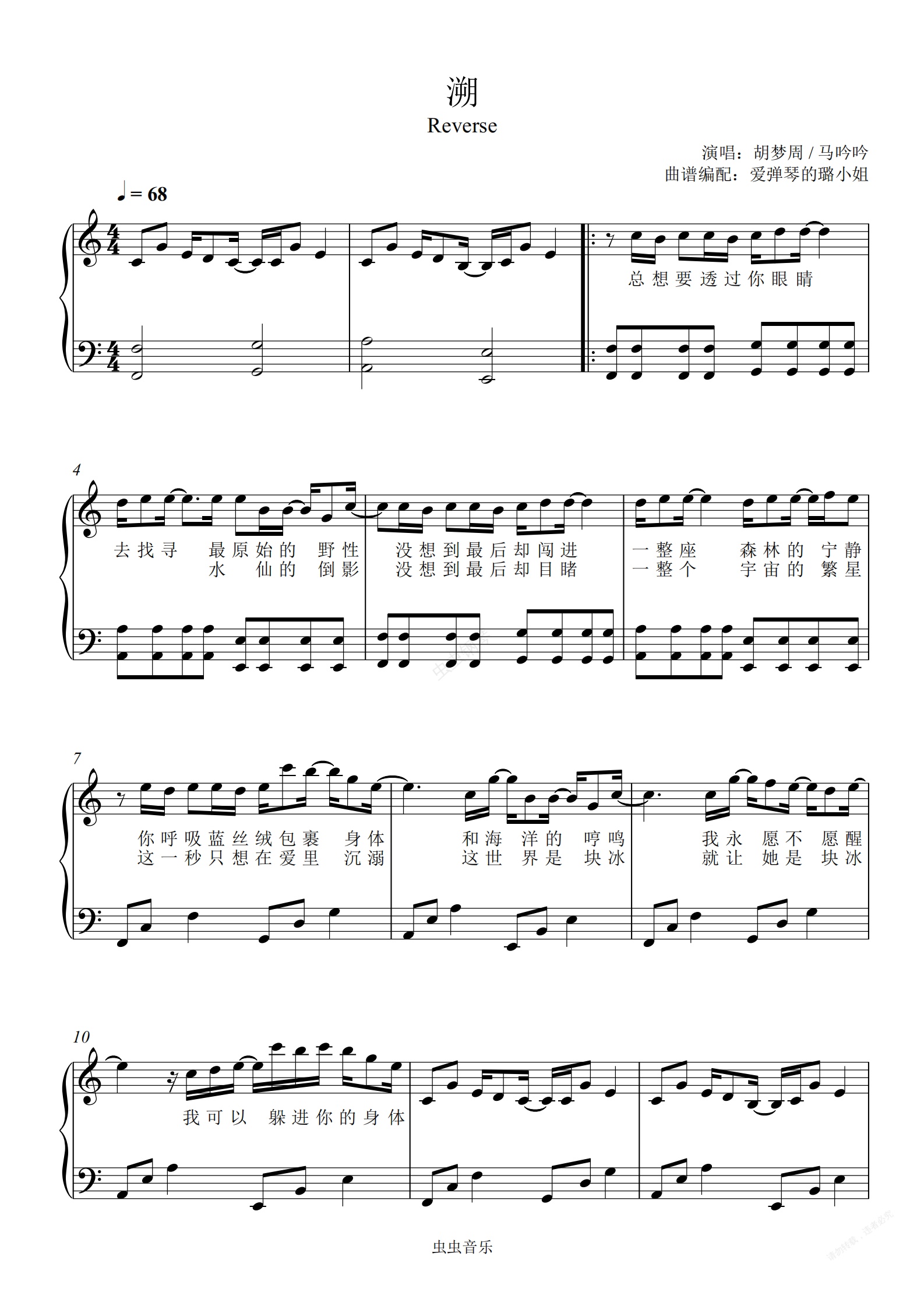 钢琴谱:溯 - C调简单易上手 - 为歌而赞 - 带歌词
