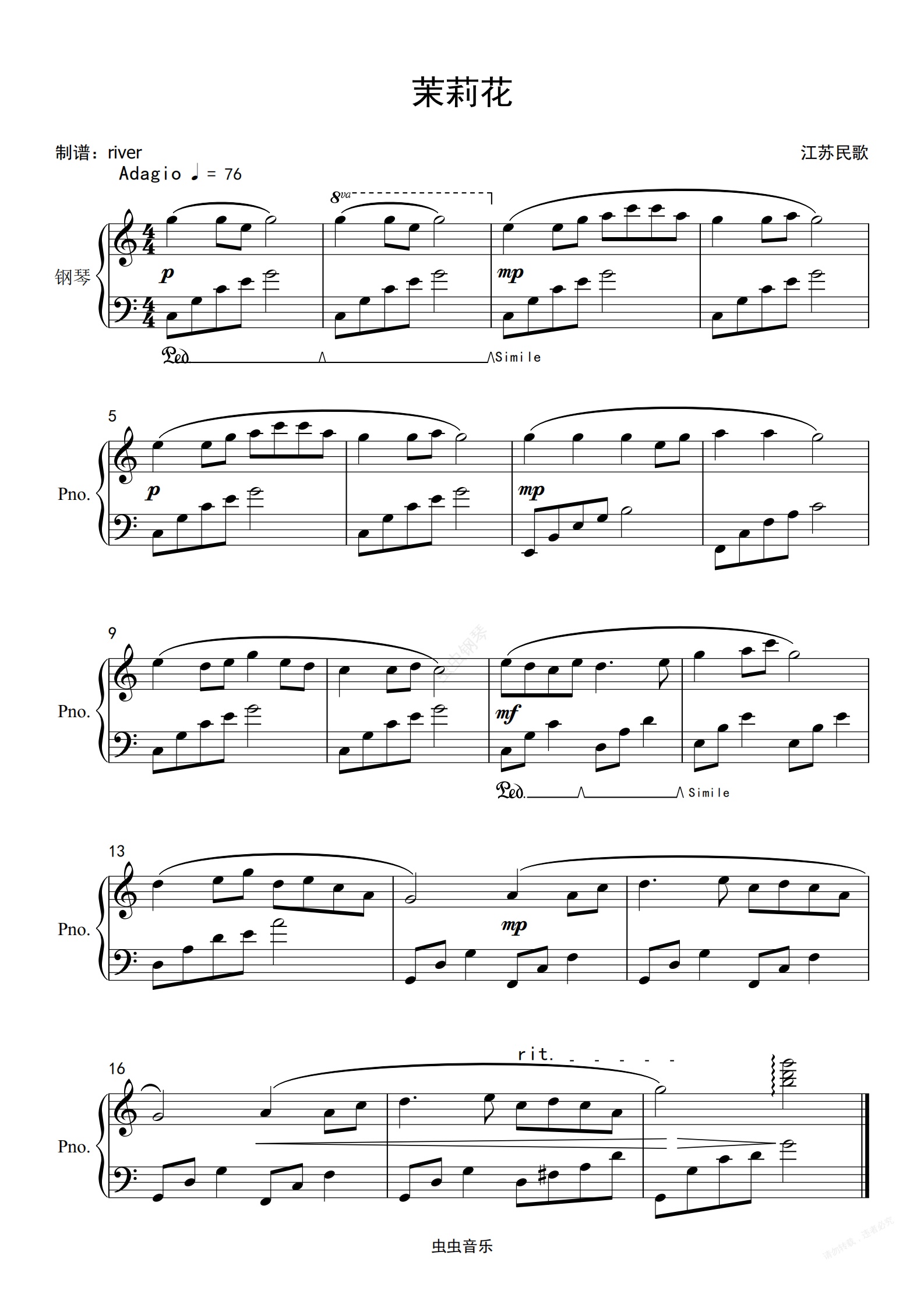 钢琴谱:茉莉花 拜尔 c调易弹专业版