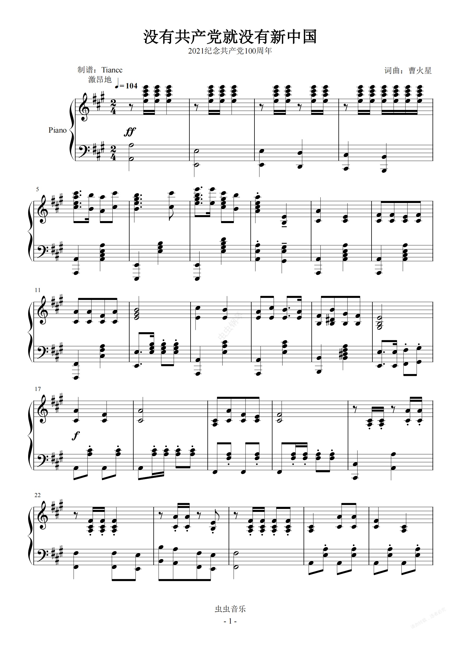 钢琴谱:《没有共产党就没有新中国》大气恢宏演奏版,299+难度