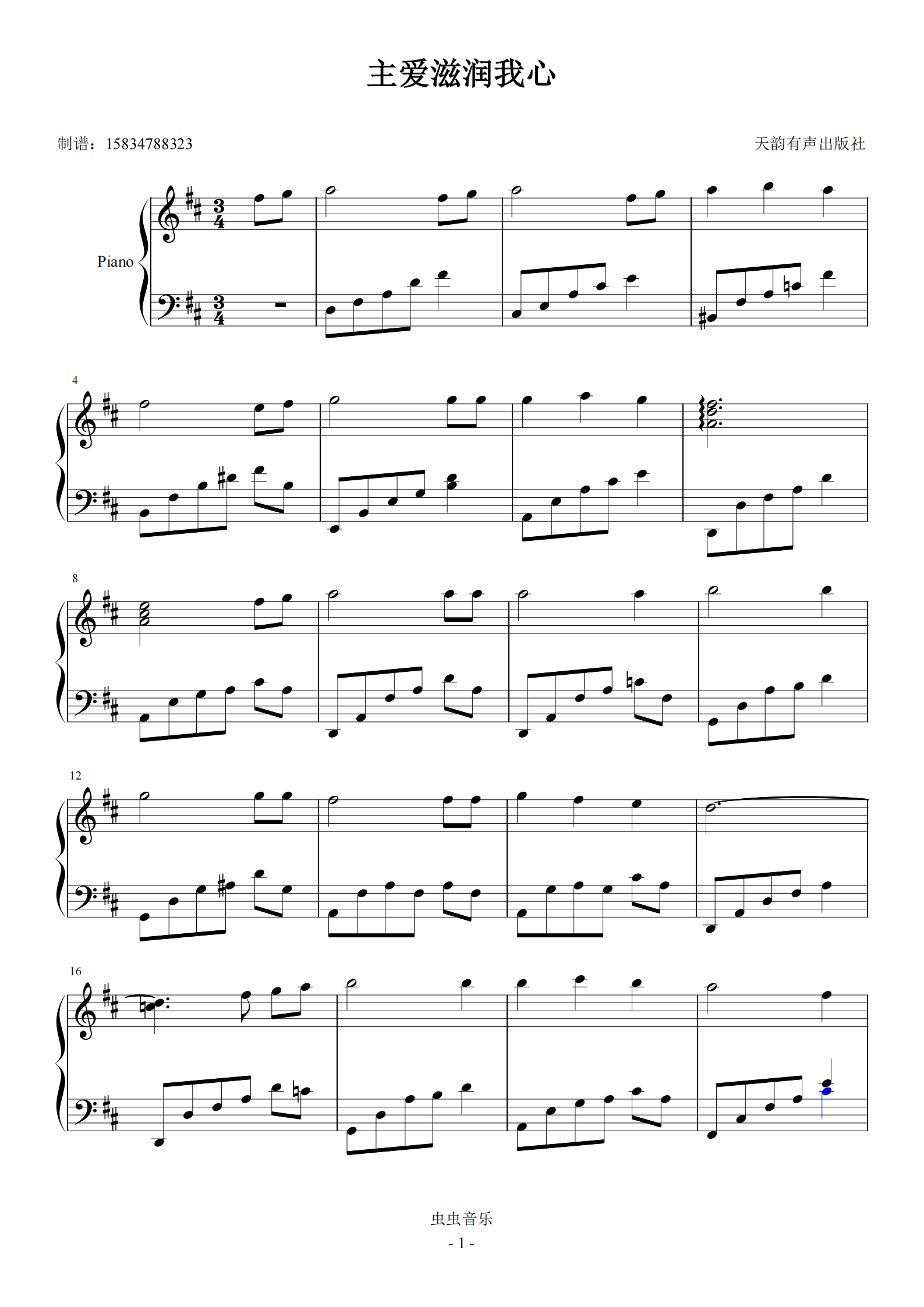 钢琴谱:主爱滋润我心