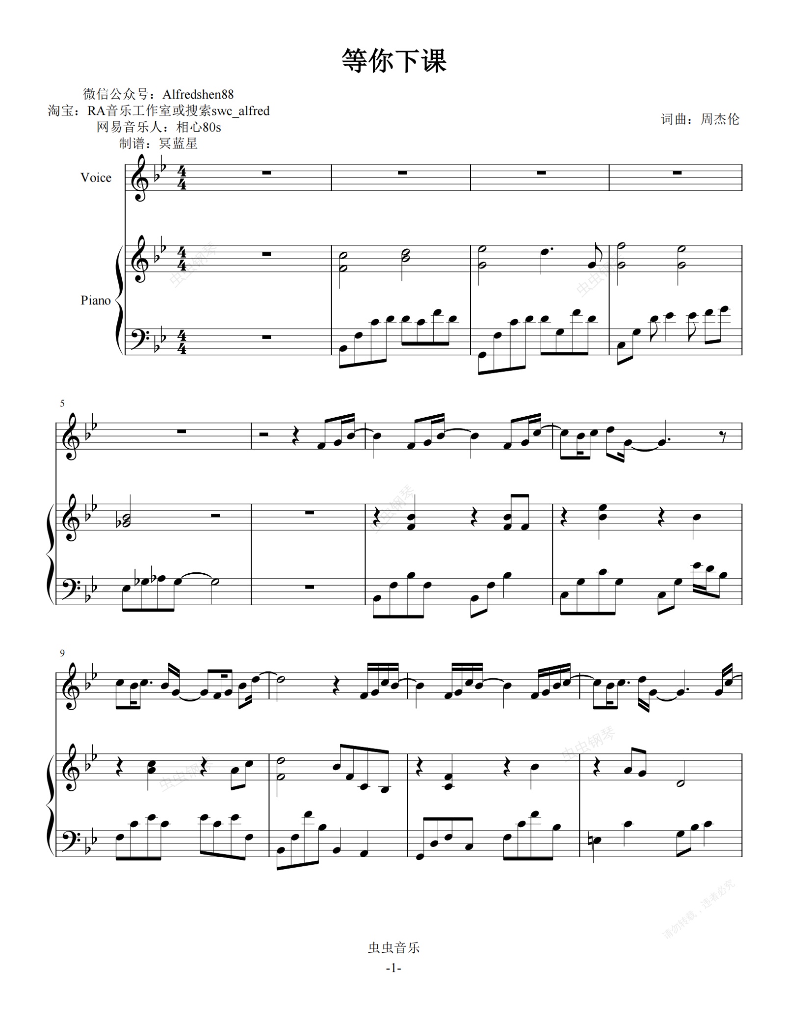 钢琴谱:等你下课-周杰伦-钢琴伴奏谱