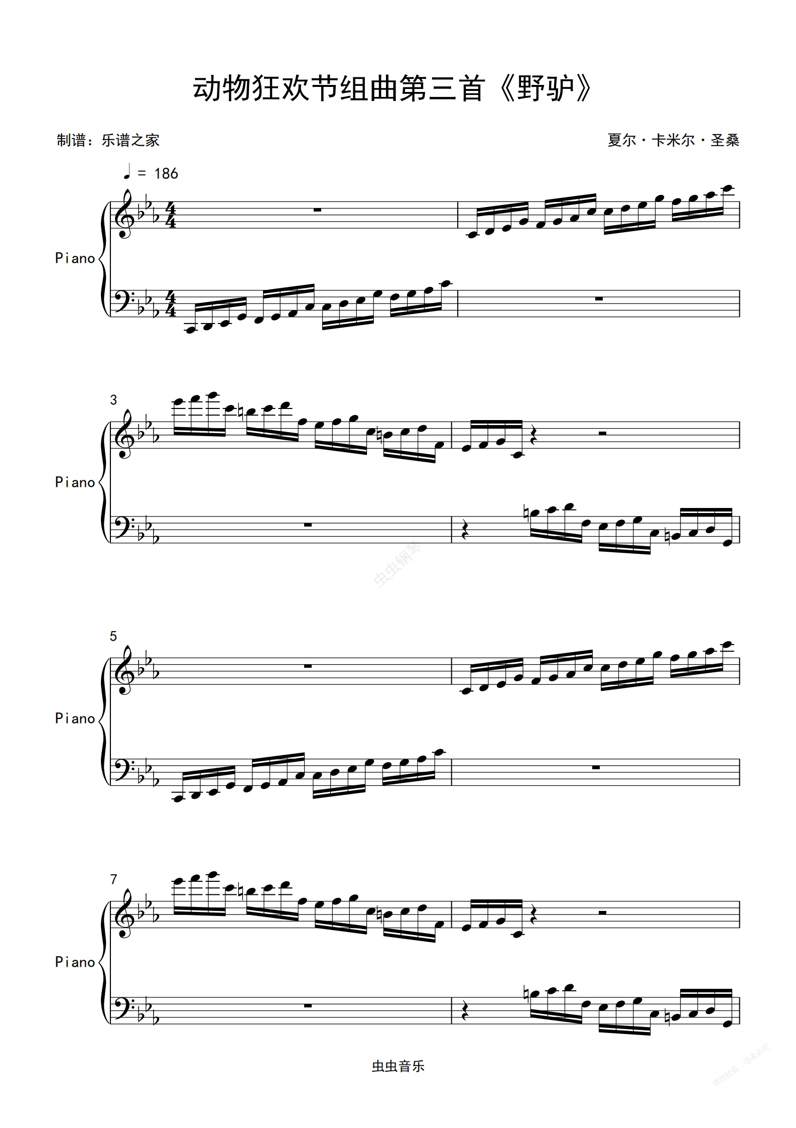 钢琴谱:动物狂欢节组曲第三首《野驴》夏尔·卡米尔·圣桑 钢琴谱 送示范音频