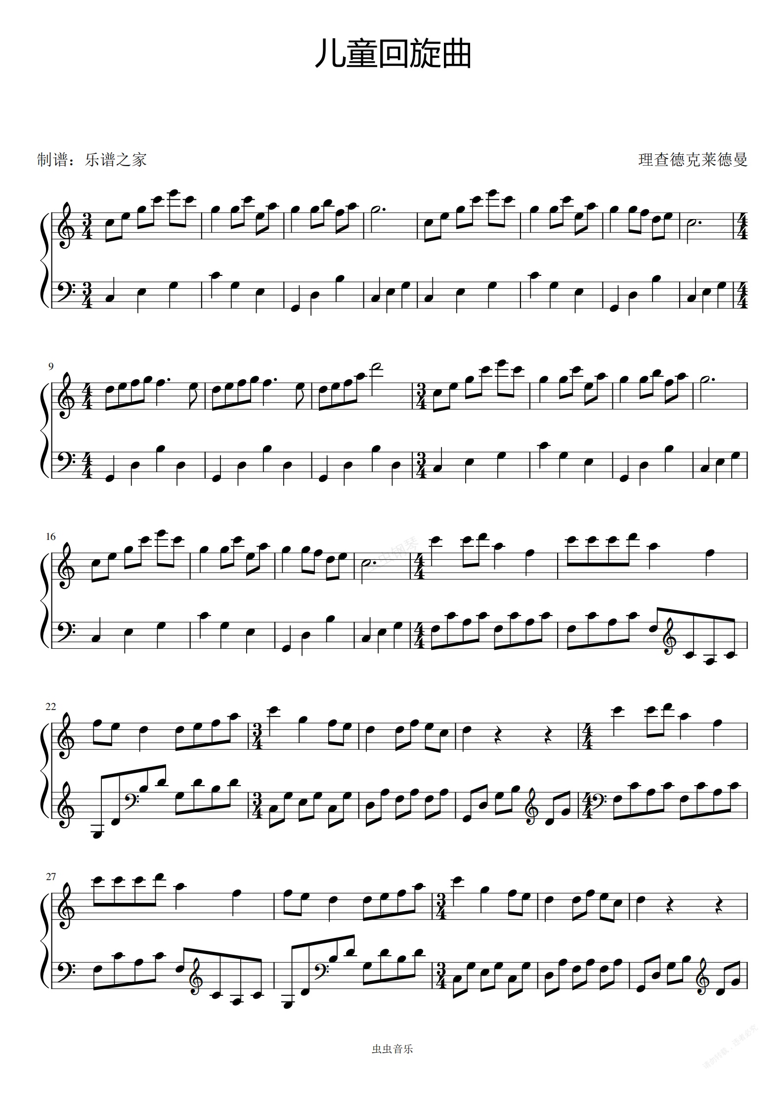 钢琴谱:儿童回旋曲 理查德克莱德曼 独奏钢琴谱 送示范音频