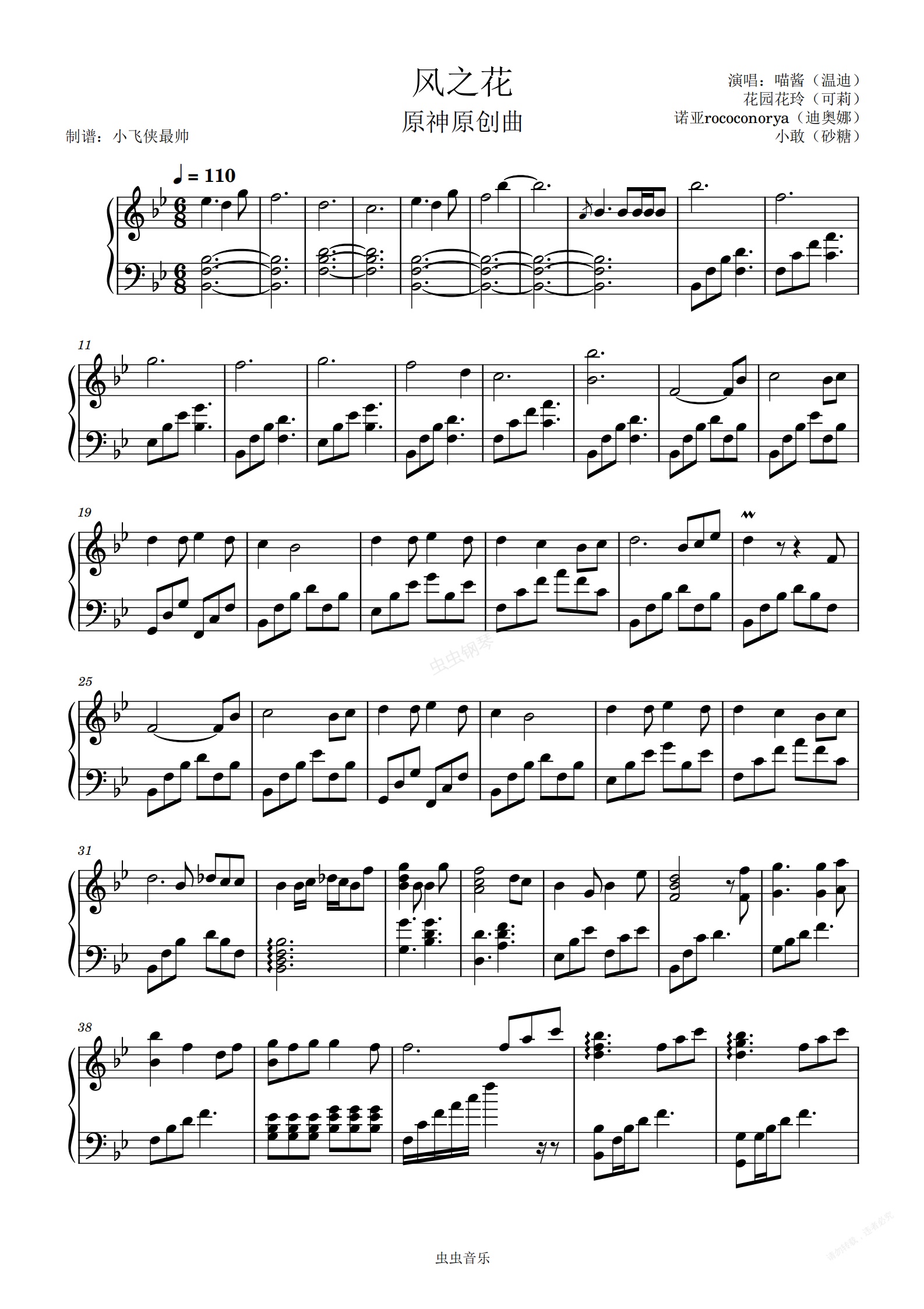 钢琴谱:风之花(原神原创曲)