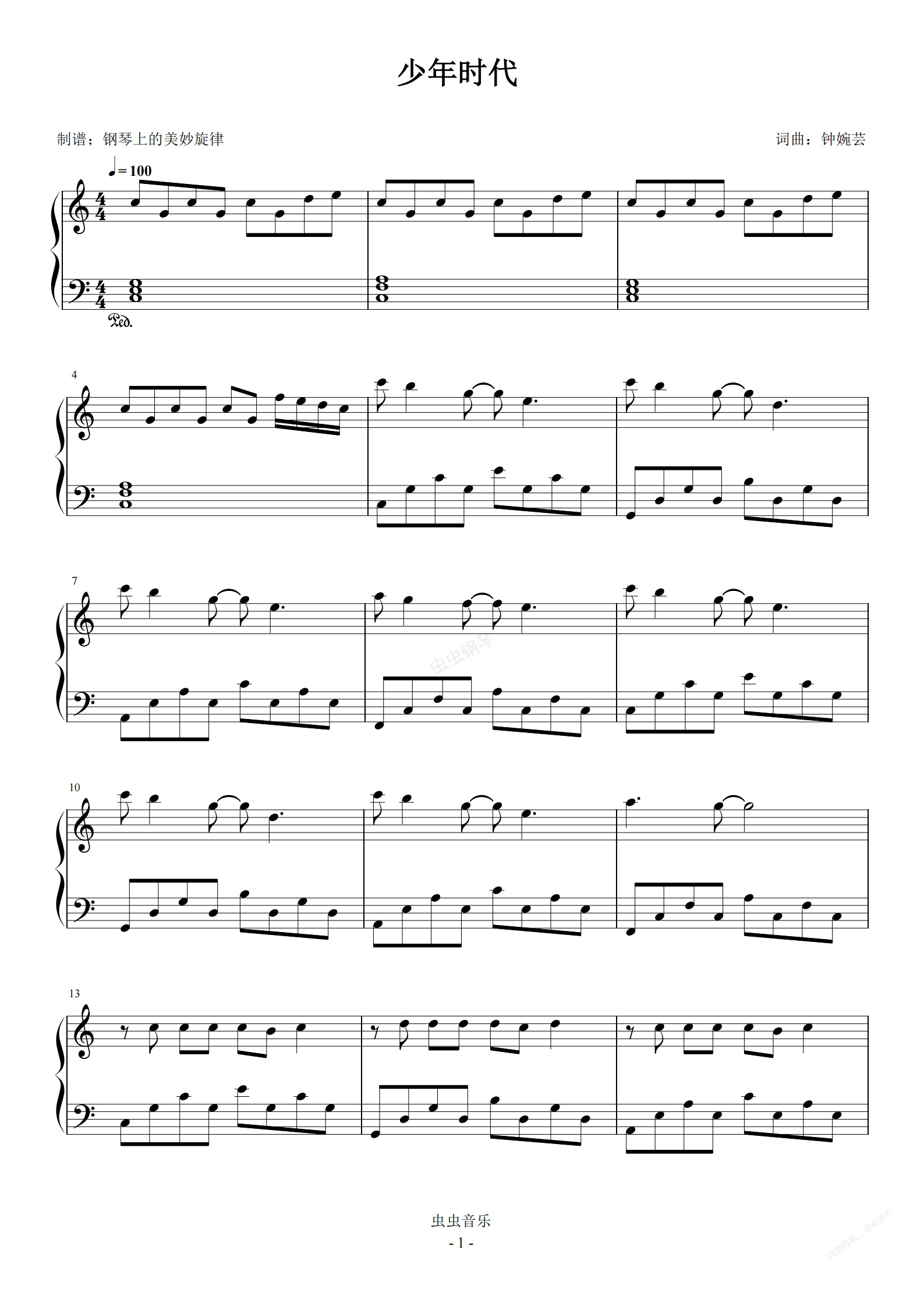 钢琴谱:少年时代 TNT时代少年团 C调简易版