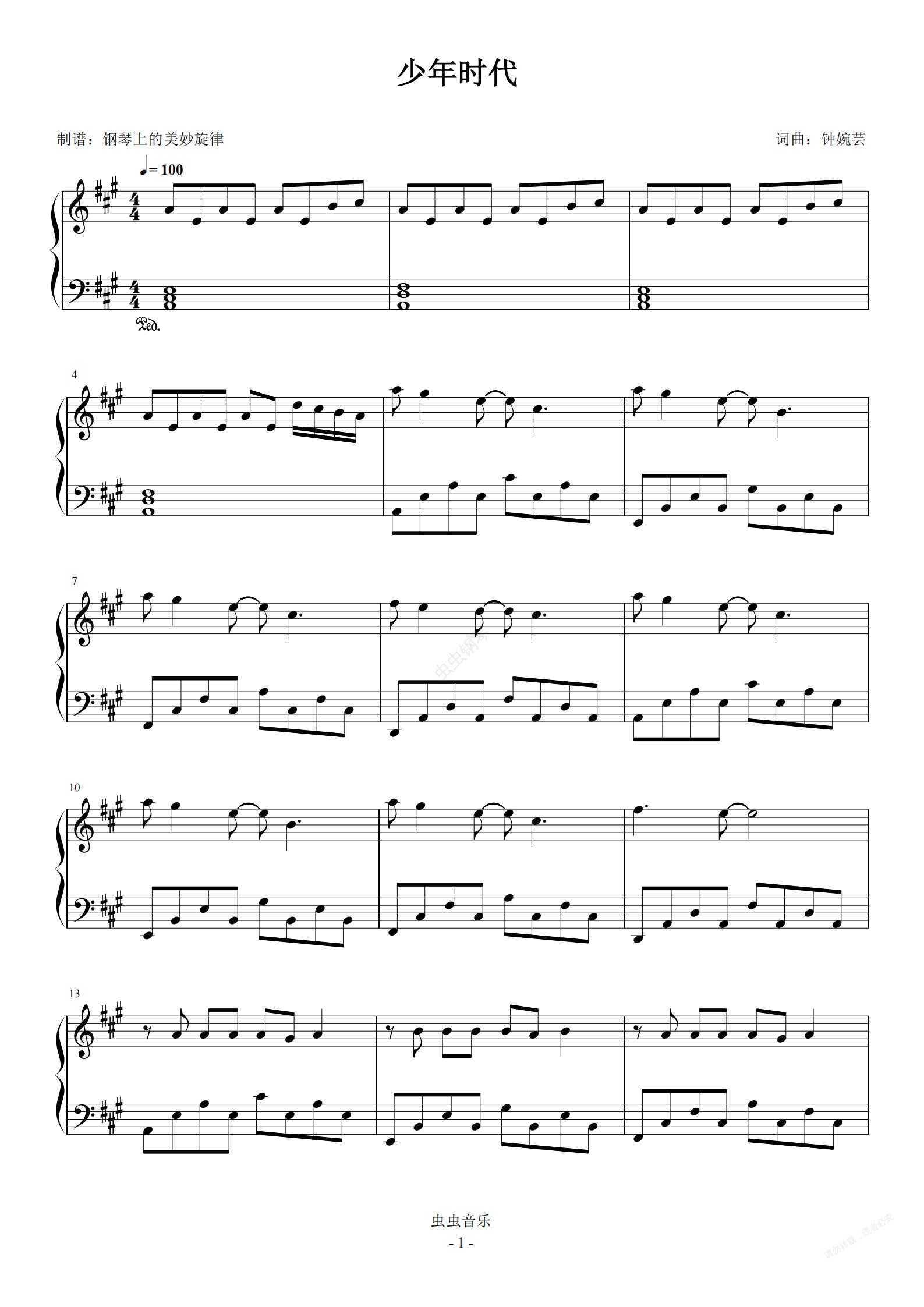 钢琴谱:少年时代 TNT时代少年团 简易版