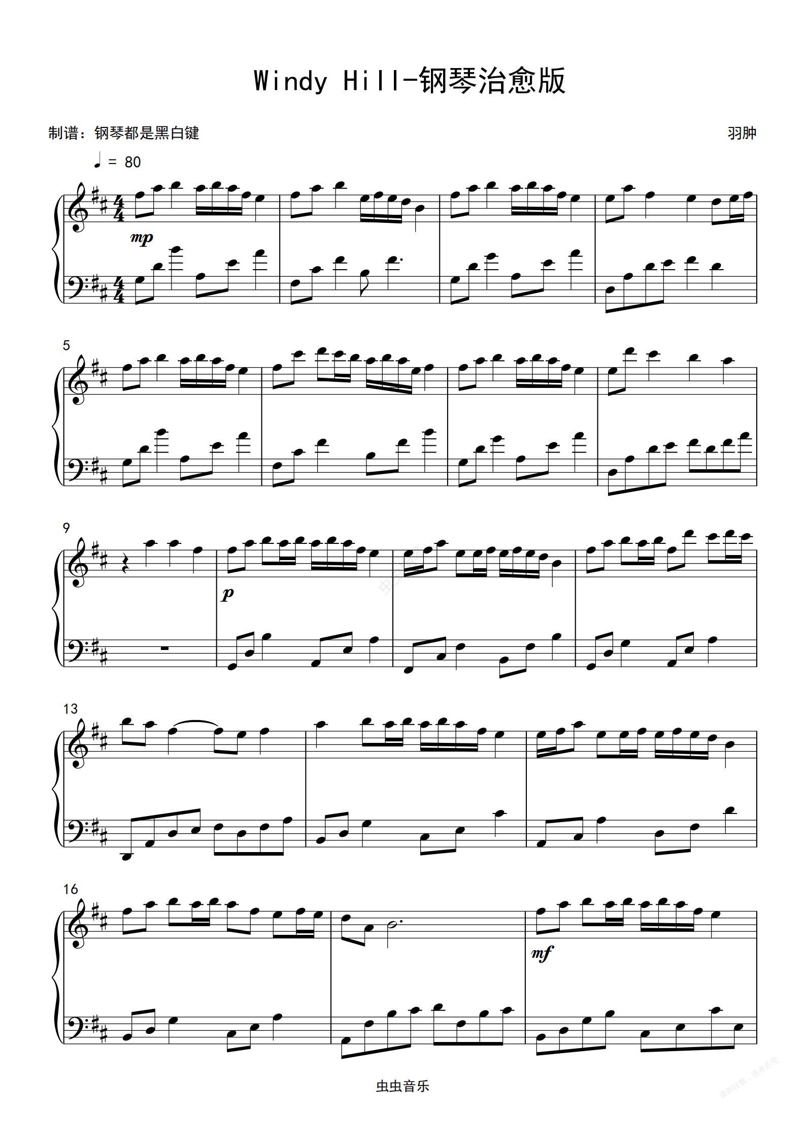 钢琴谱:Windy Hill-(钢琴治愈版)