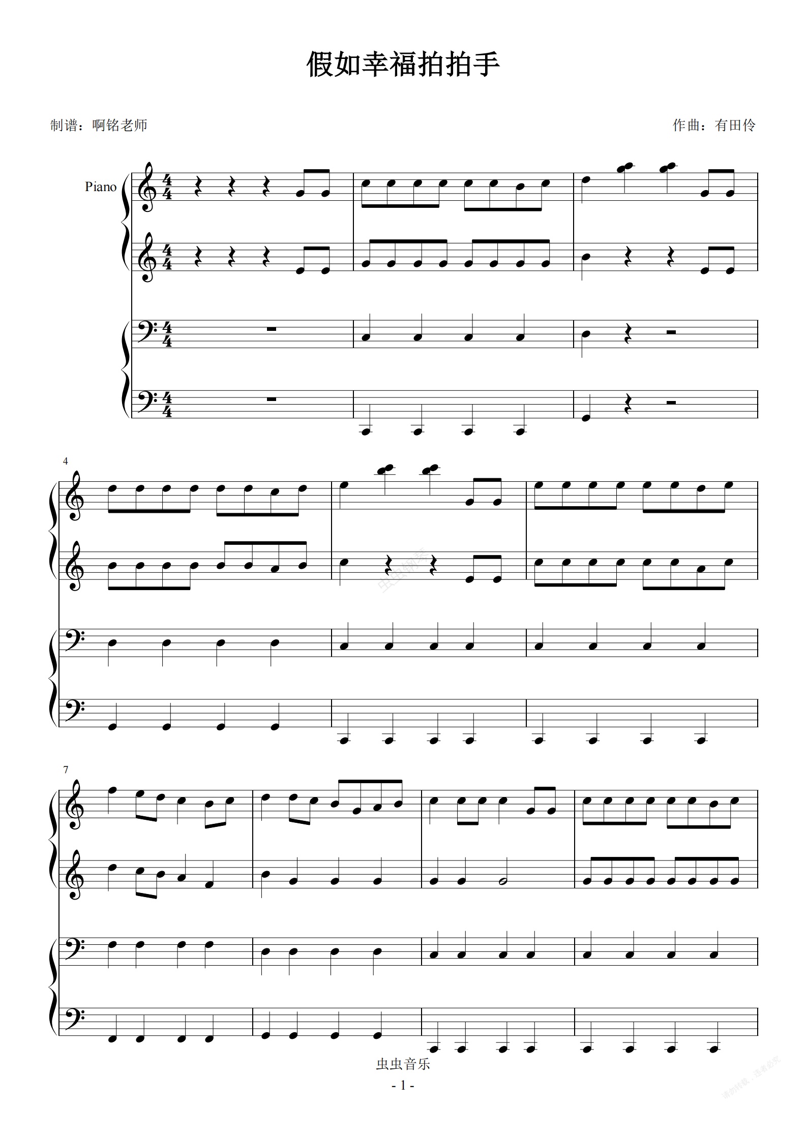 钢琴谱:假如幸福拍拍手【四手联弹 小汤3】幸福拍手歌