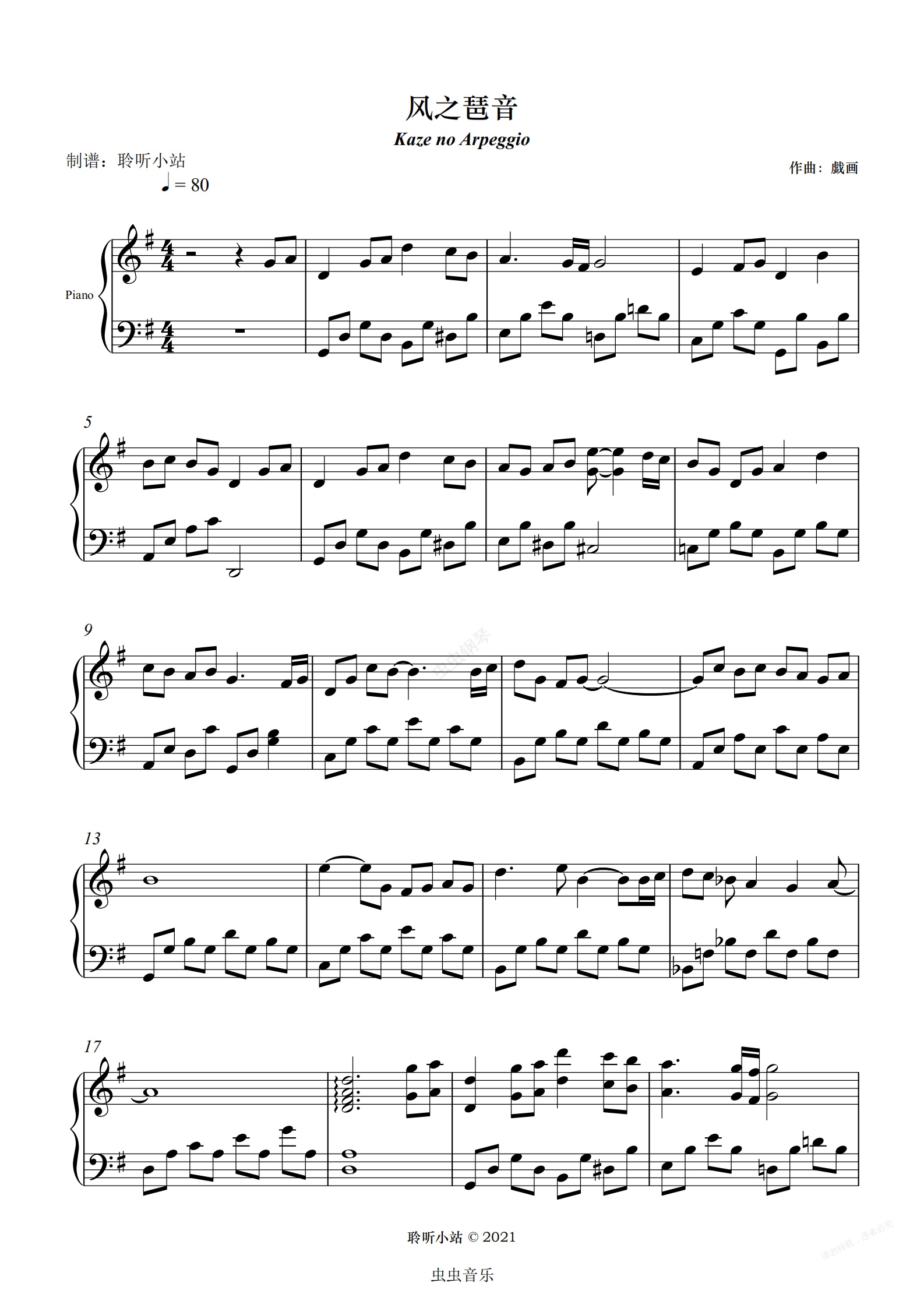 钢琴谱:风之琶音 風のアルペジオ (《青空下的约定 (この青空に約束を―)》插曲)