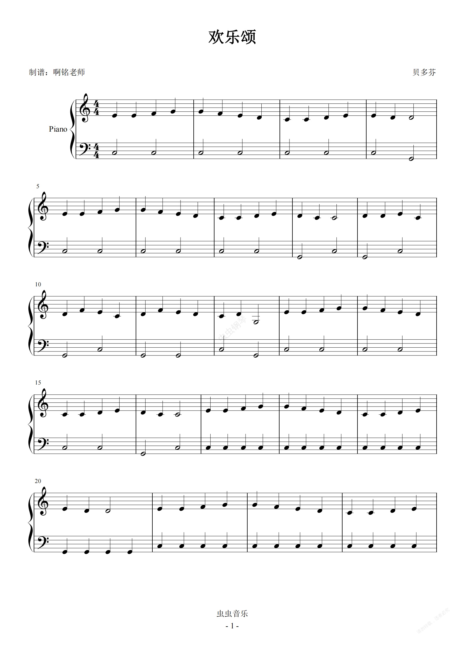 钢琴谱:欢乐颂 【小汤2】