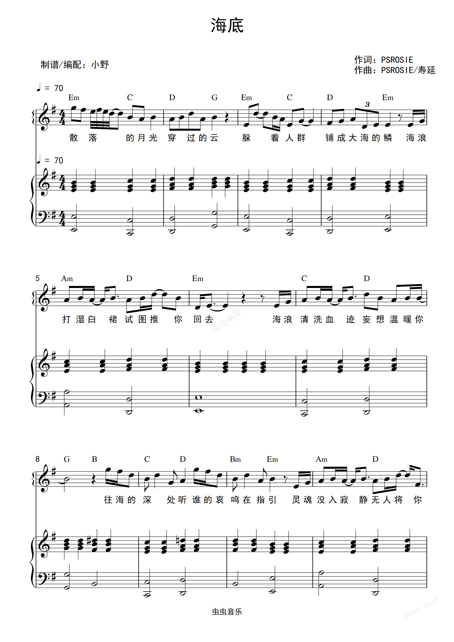 钢琴谱:海底(和弦弹唱版)