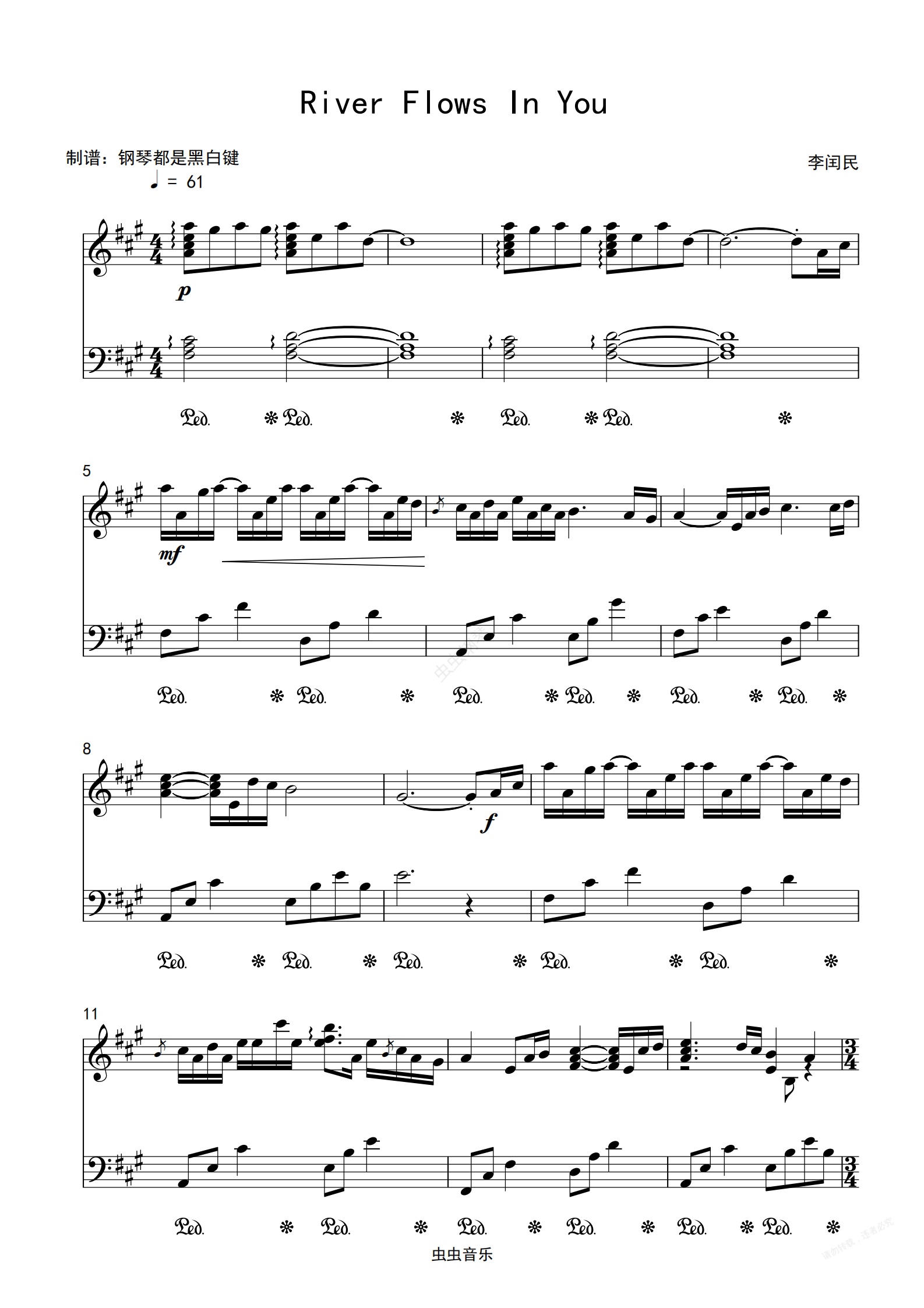 钢琴谱:River Flows In You  -超好听昼夜改编版