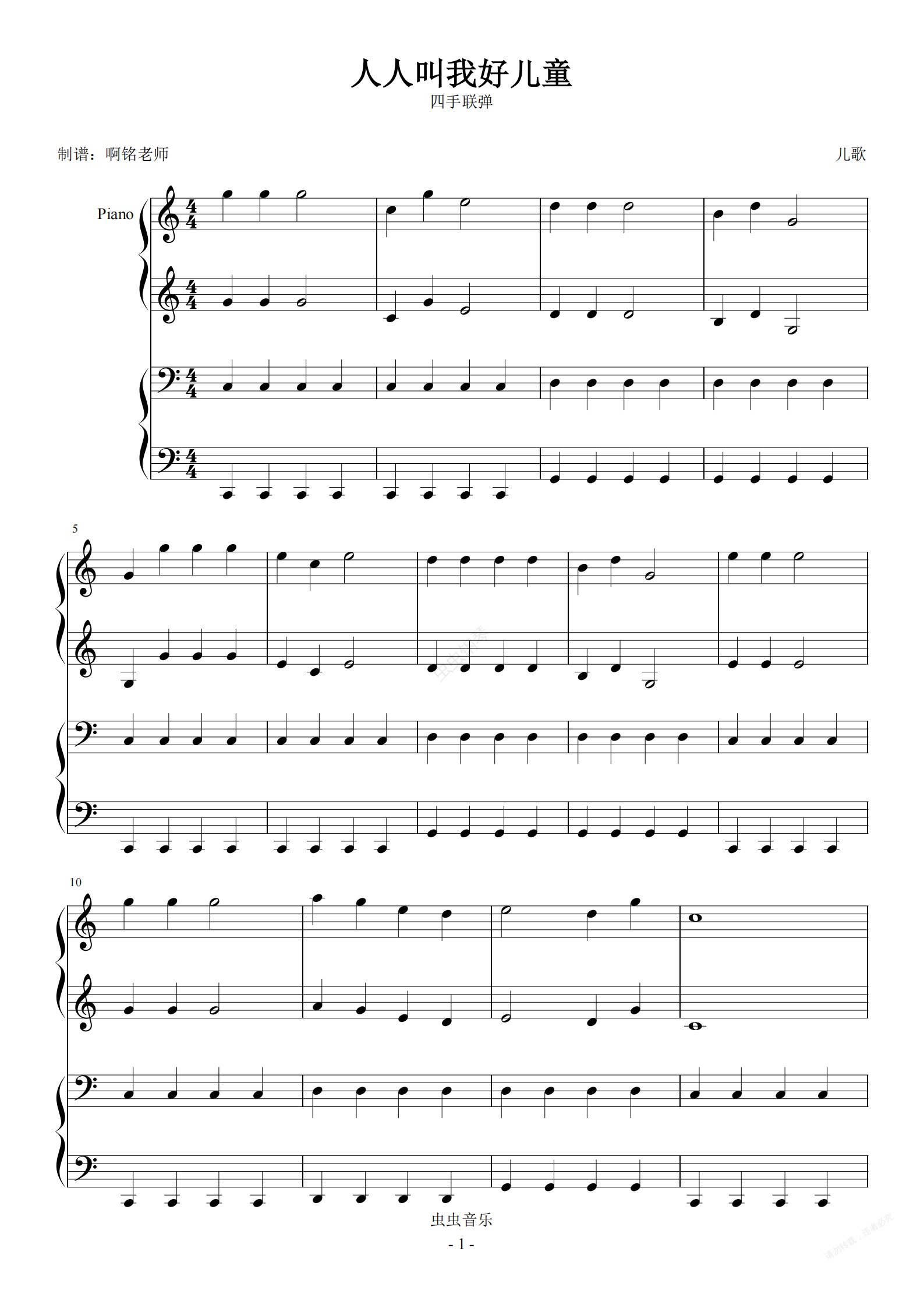 钢琴谱:人人叫我好儿童【小汤3 四手联弹】