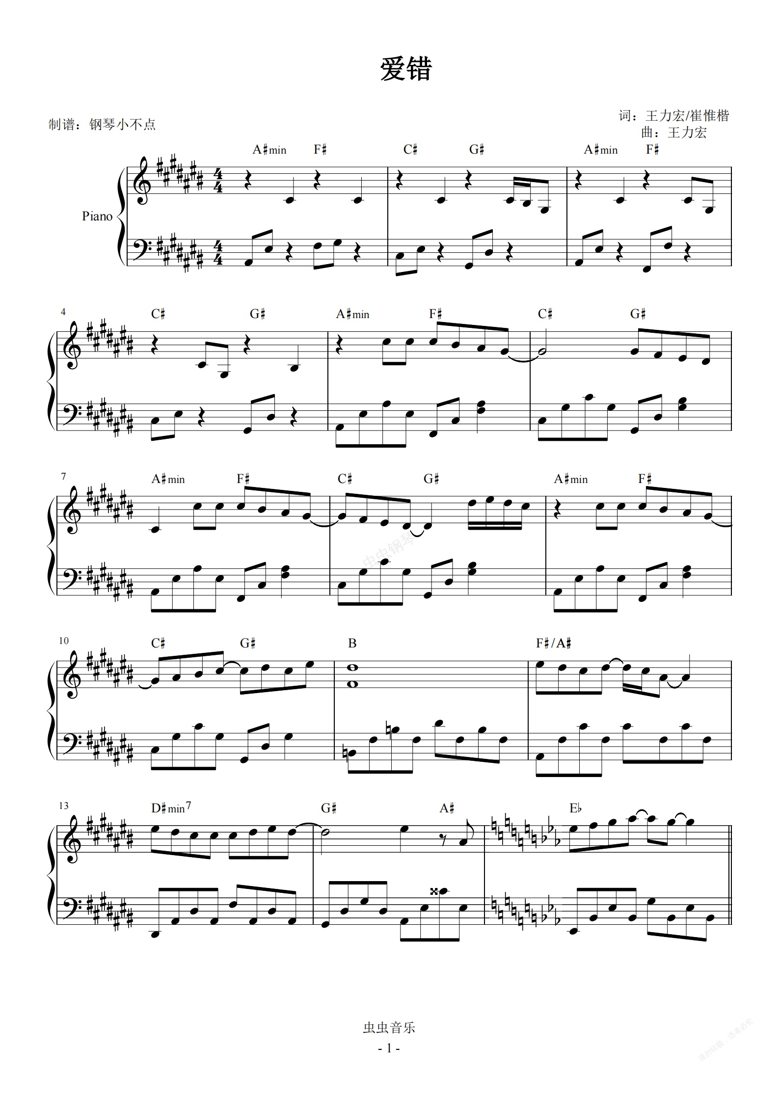 钢琴谱:爱错【简易 唯美】