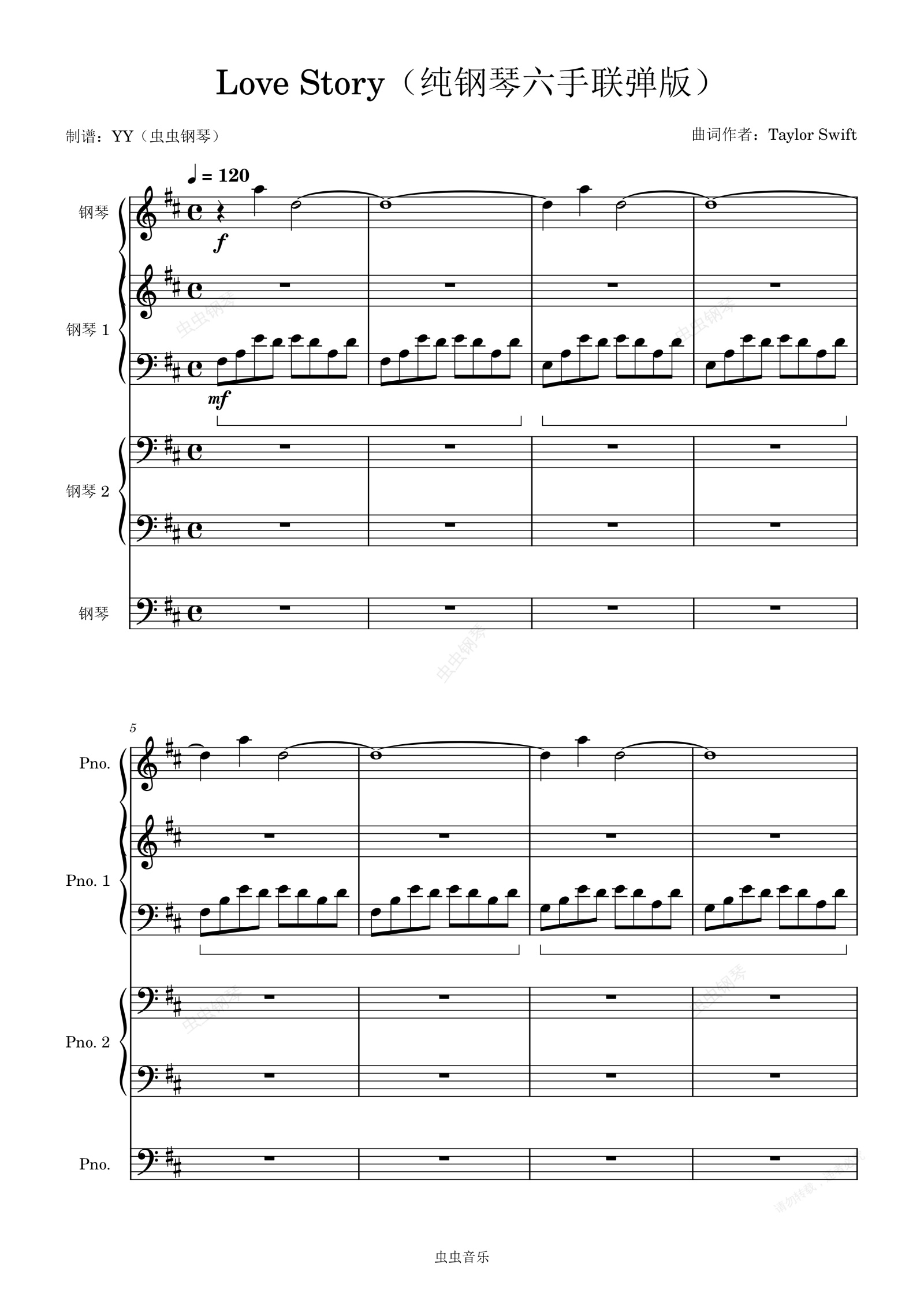 钢琴谱:Love Story(纯钢琴六手连弹版)