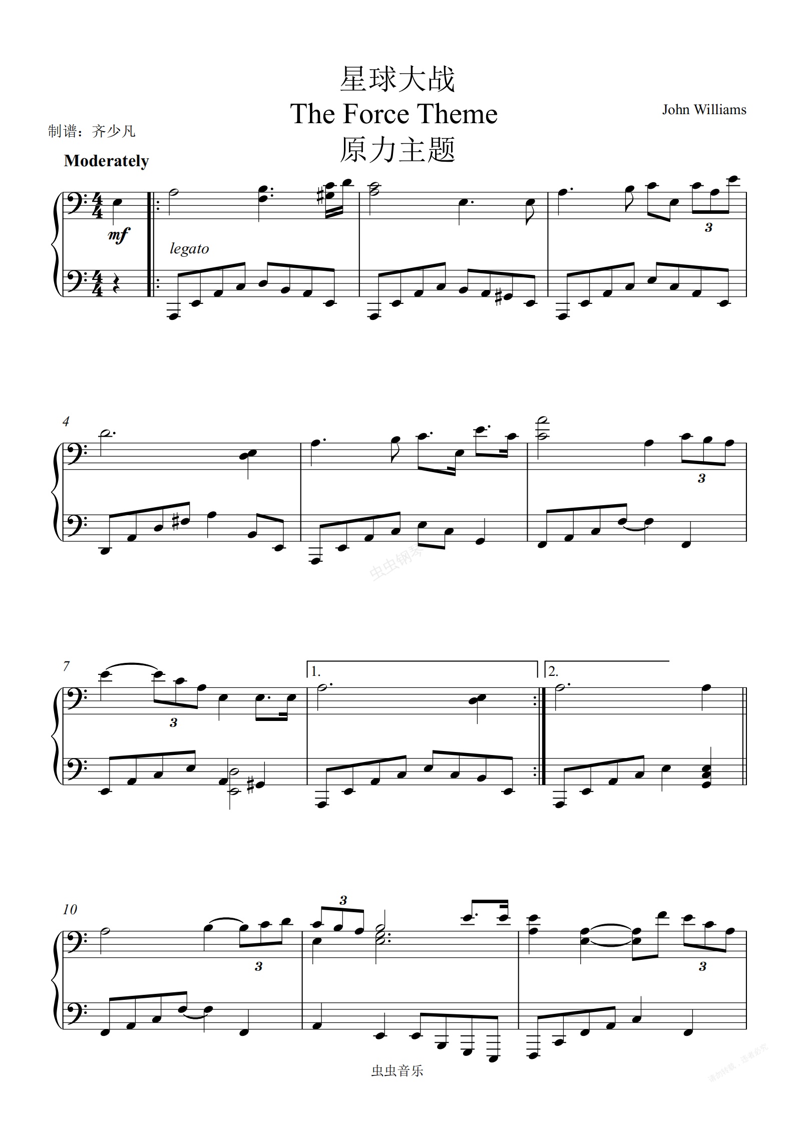 钢琴谱:【初学者】原力主题-星球大战