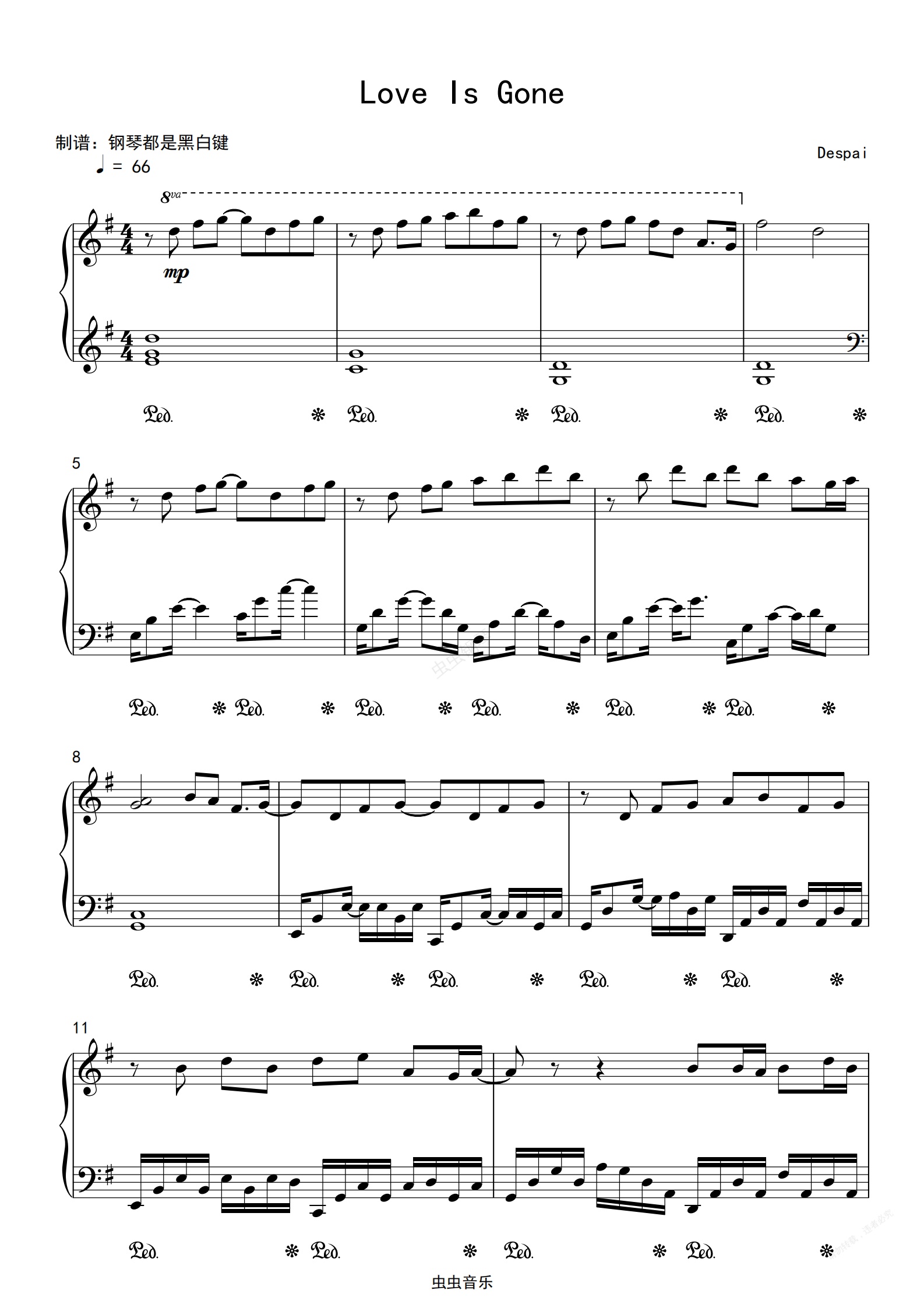 钢琴谱:火遍全网的《Love Is Gone 》- (钢琴弹奏治愈版)