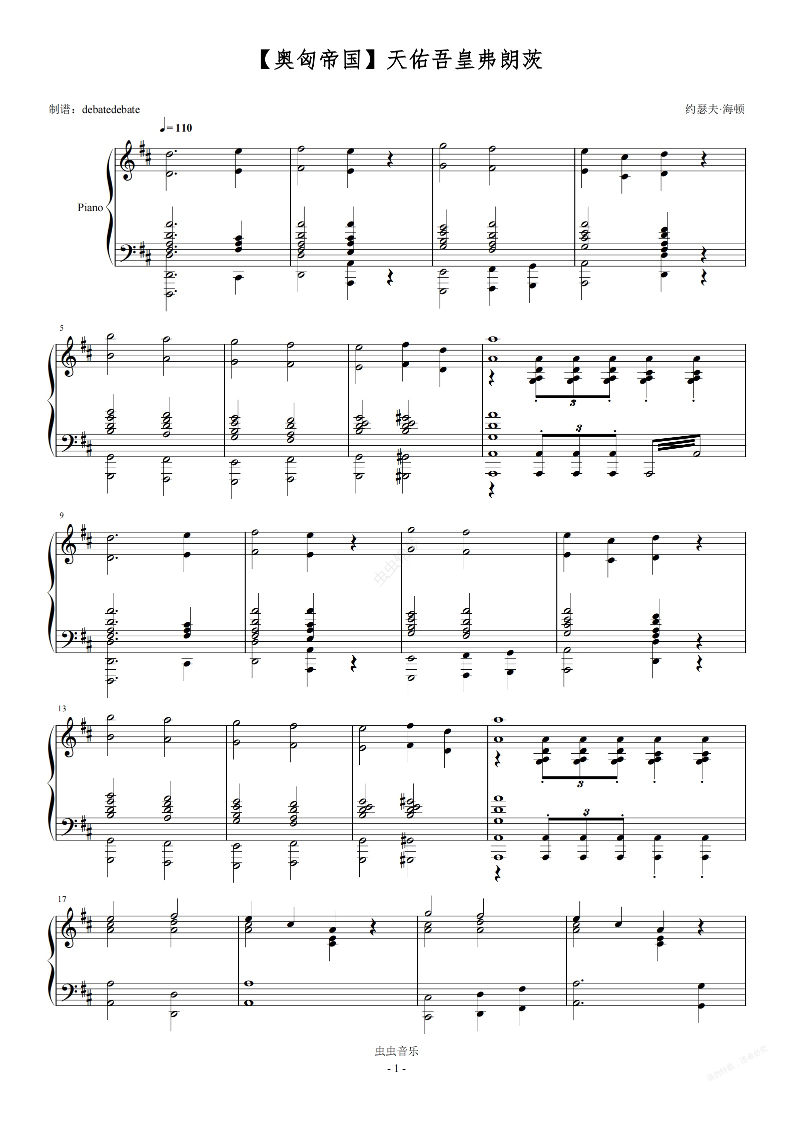 钢琴谱:【奥匈帝国】天佑吾皇弗朗茨