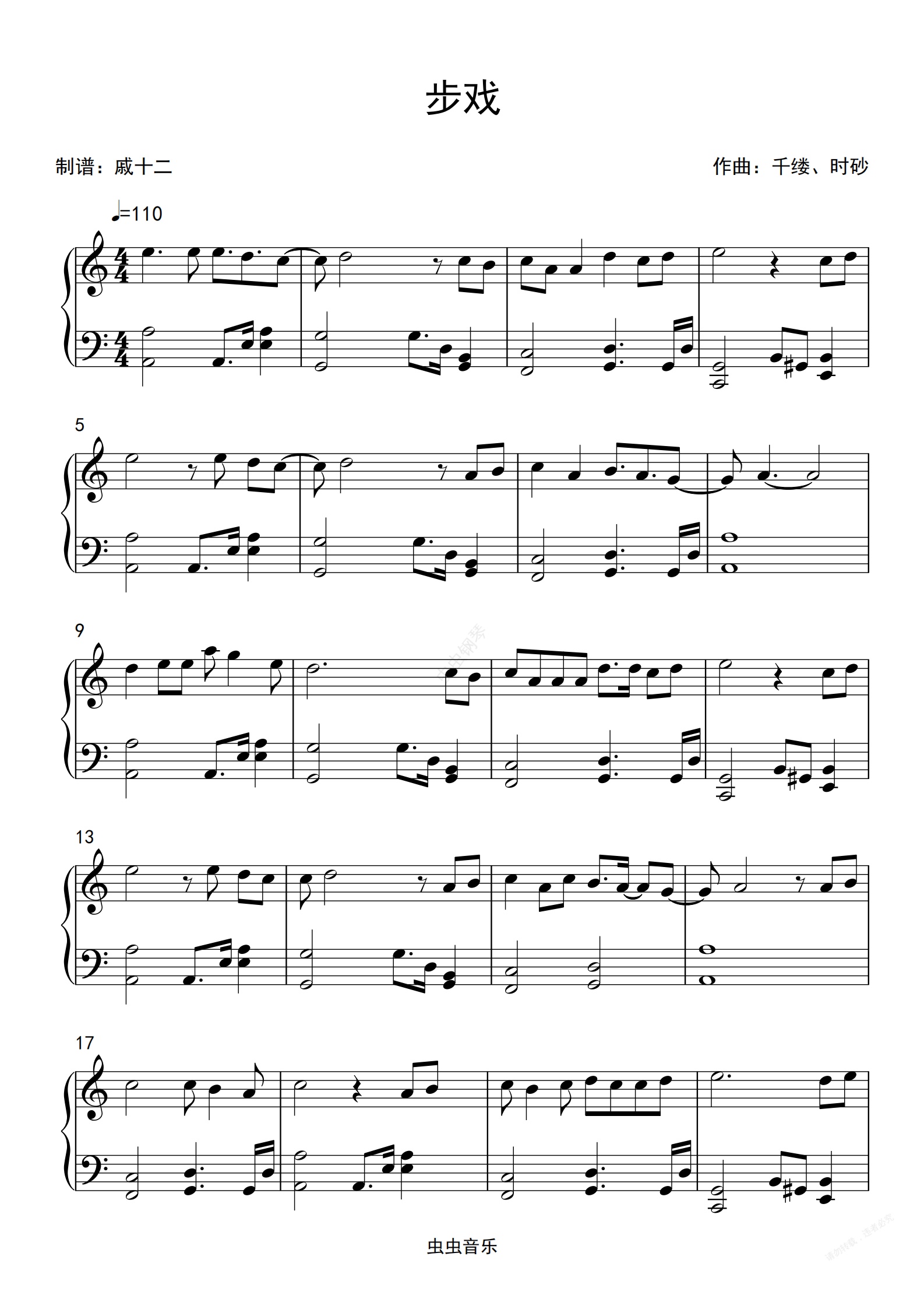 钢琴谱:步戏 (盗墓笔记)-C调简单版