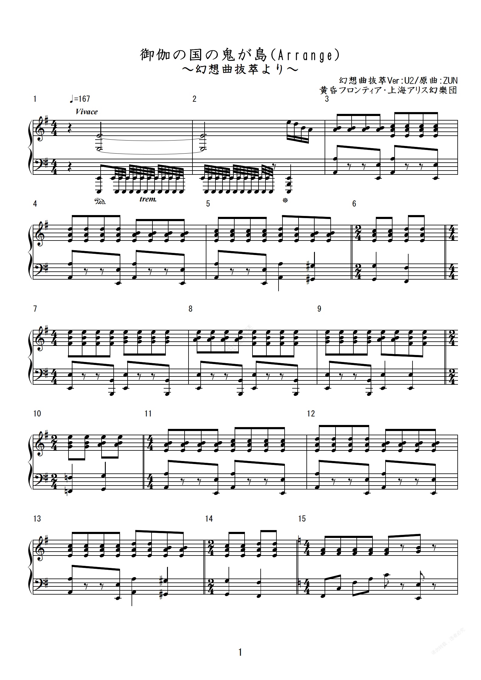 钢琴谱:「Assaultdoor」御伽の国の鬼が岛 ~ Missing Power