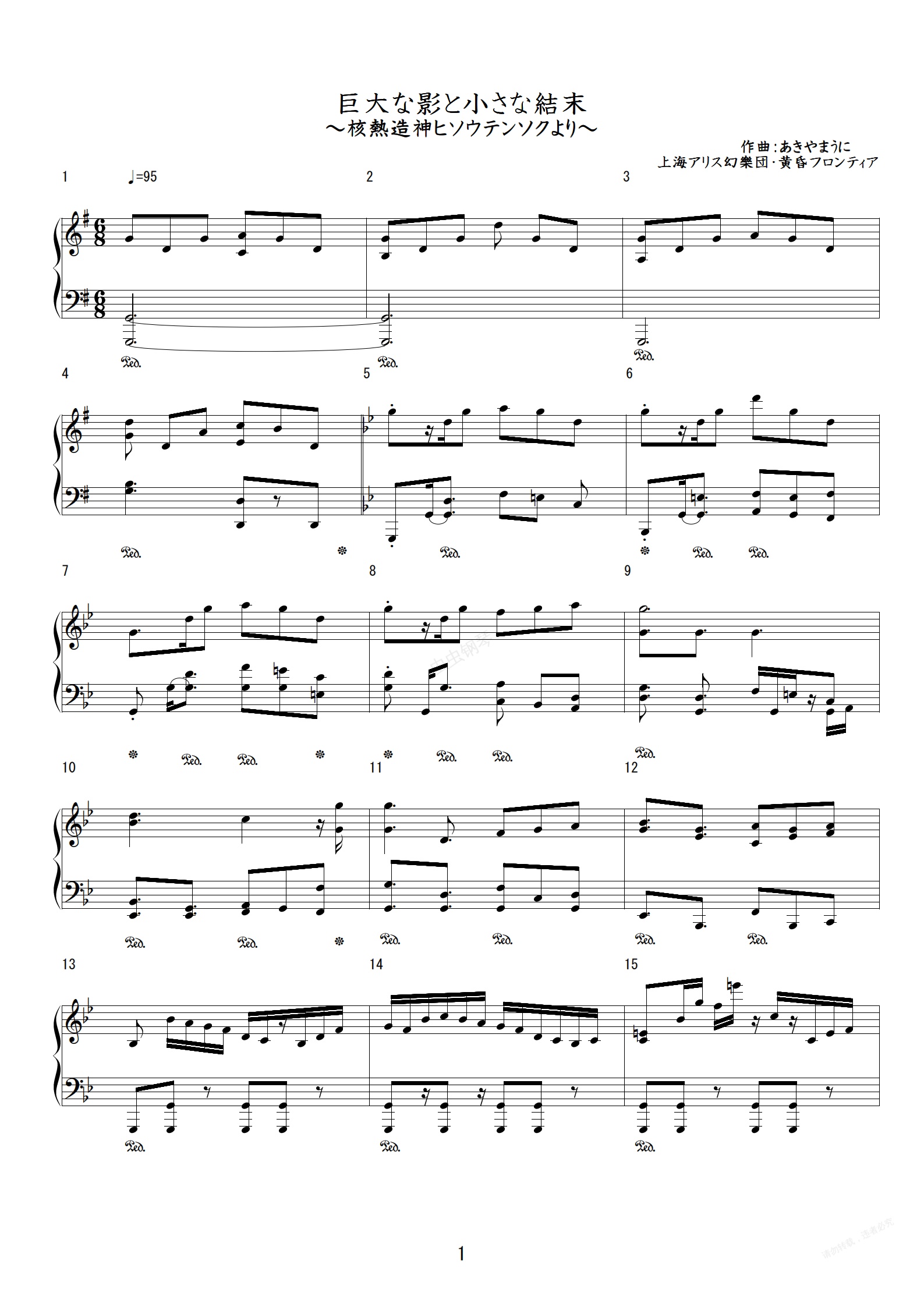 钢琴谱:「Assaultdoor」巨大な影と小さな结末