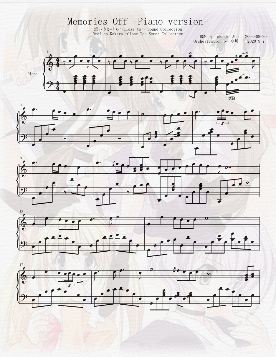 钢琴谱:秋之回忆Memories Off -Piano version-