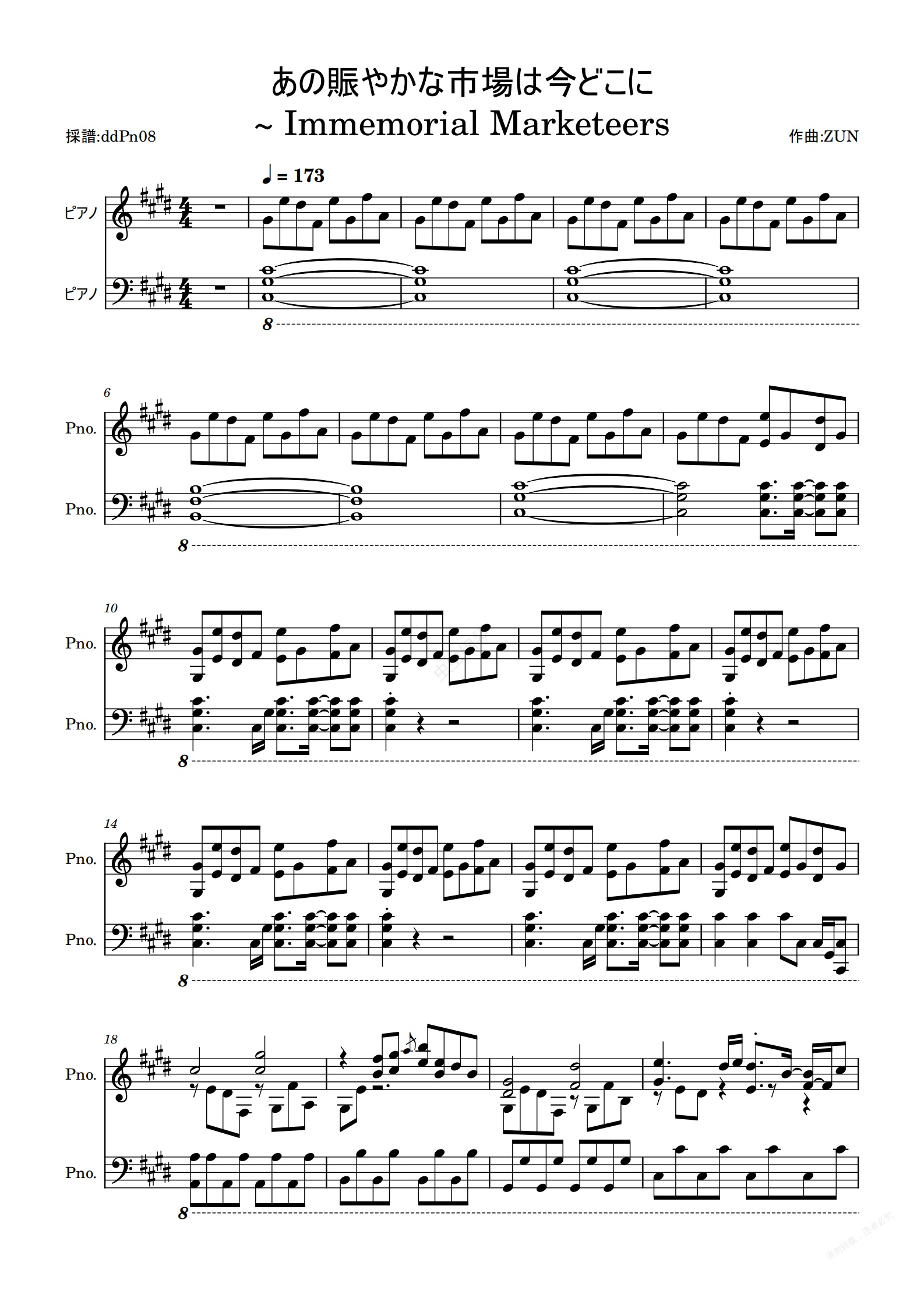 钢琴谱:【东方虹龙洞】熙攘市场今何在 ~ Immemorial Marketeers