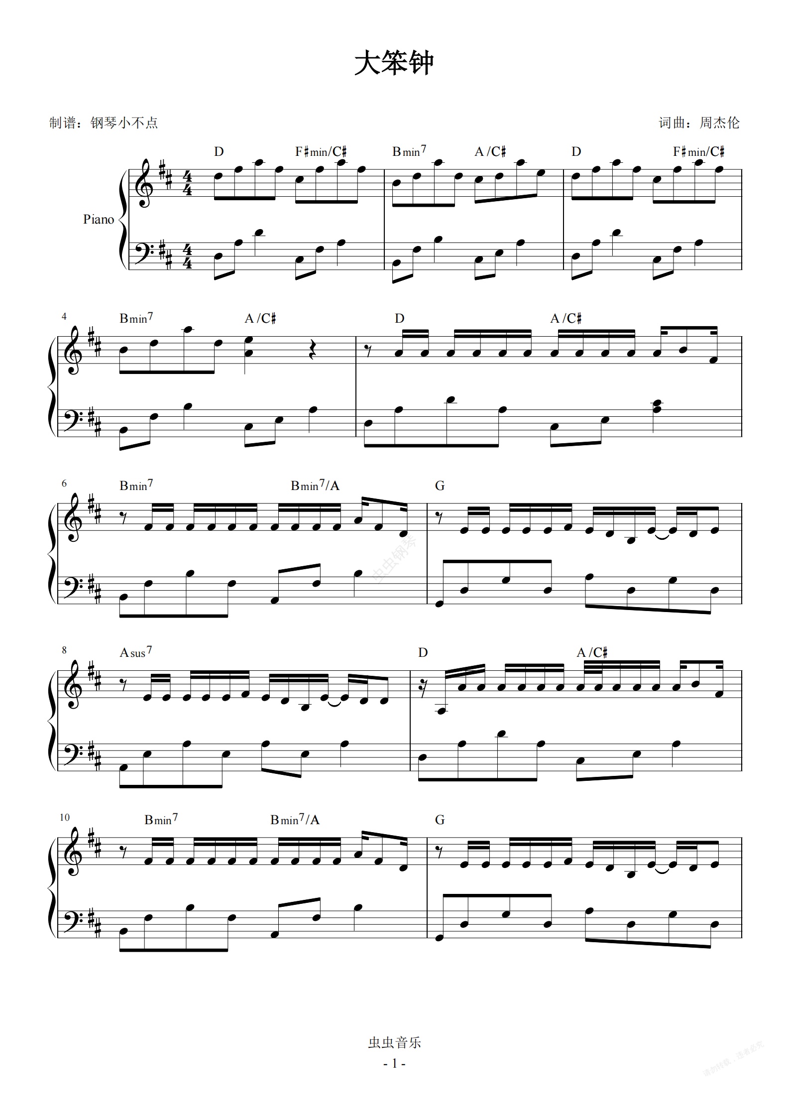 钢琴谱:大笨钟【简易 唯美】