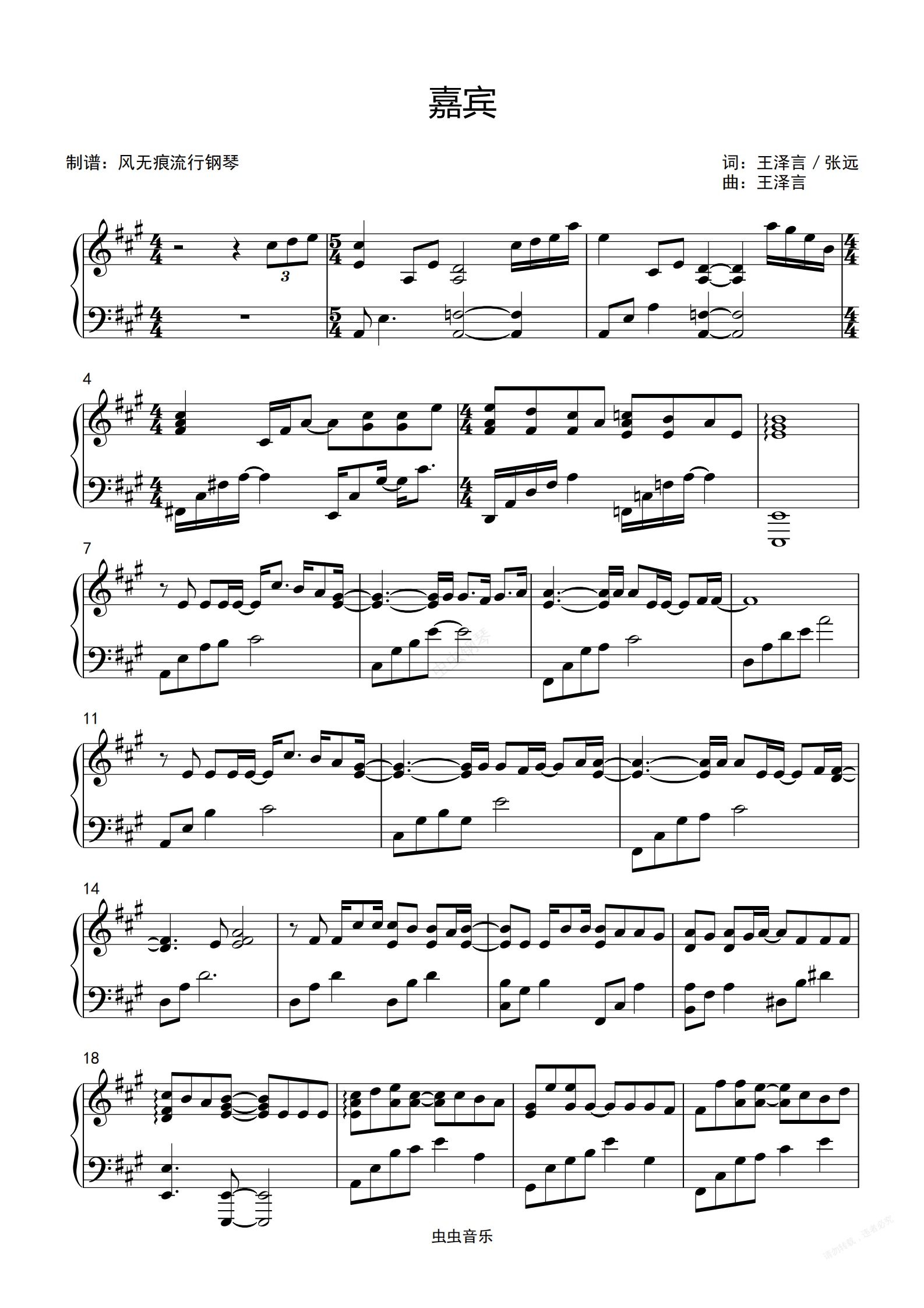 钢琴谱:原调-嘉宾-张远〖丰富版〗