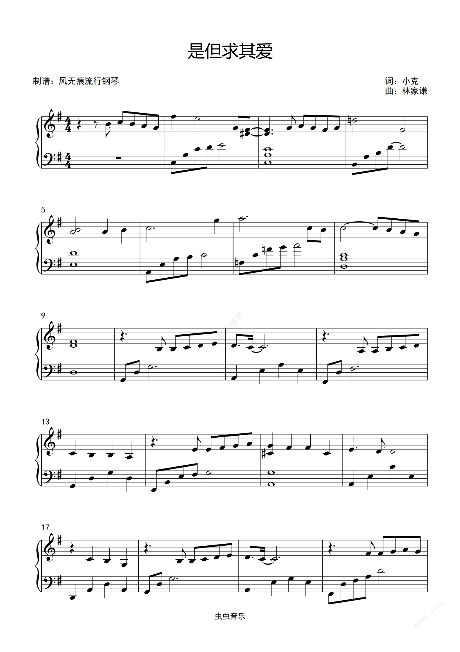 钢琴谱:G调-是但求其爱-陈奕迅〖简易动听〗