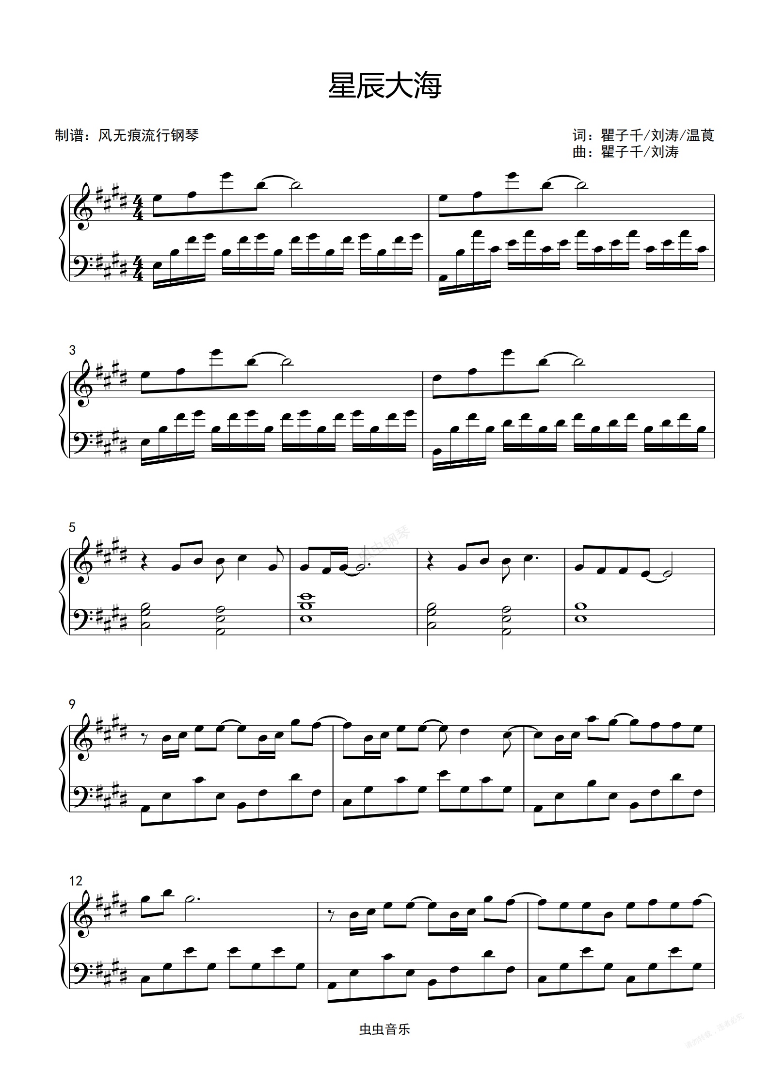 钢琴谱:原调-星辰大海-黄霄云〖简易动听〗