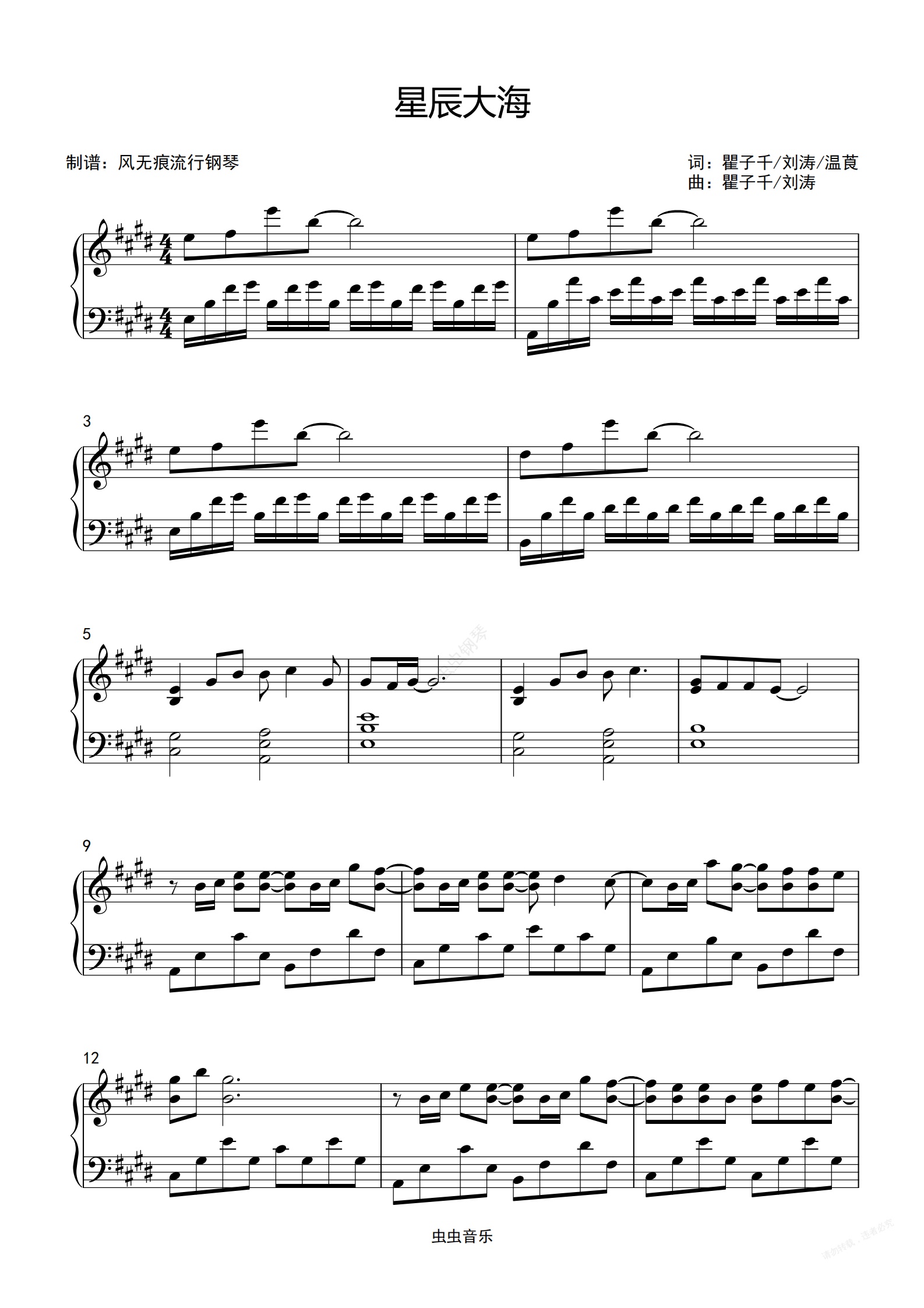 钢琴谱:原调-星辰大海-黄霄云〖丰富版〗