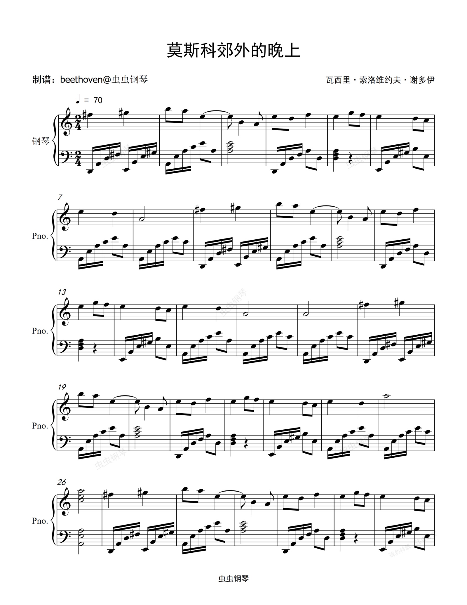 钢琴谱:莫斯科郊外的晚上_弹奏谱