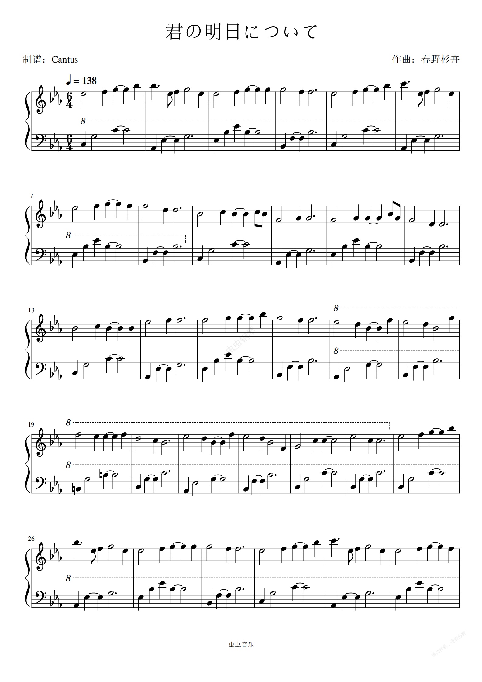 钢琴谱:君の明日について/关于你的明天-春野杉卉