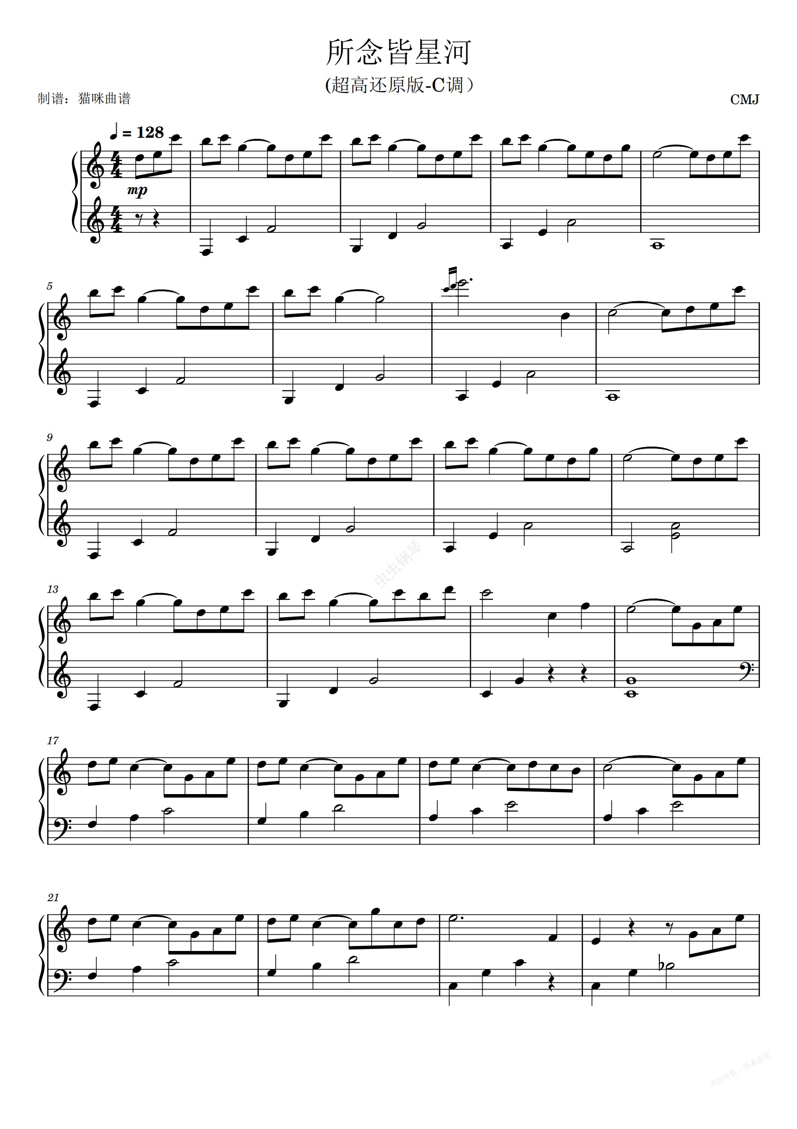 钢琴谱:所念皆星河 (超高还原版-C调)