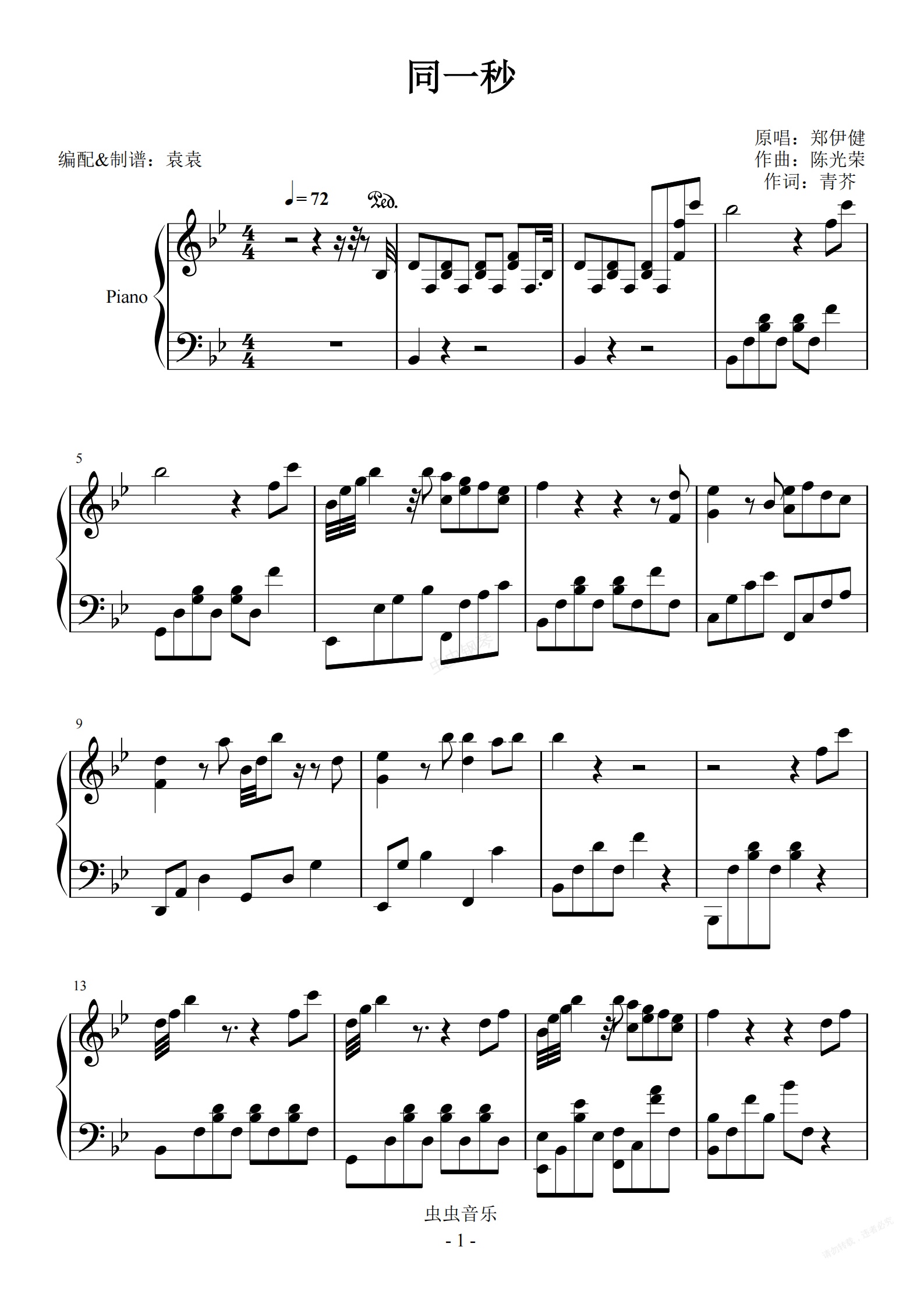 钢琴谱:同一秒 - 郑伊健