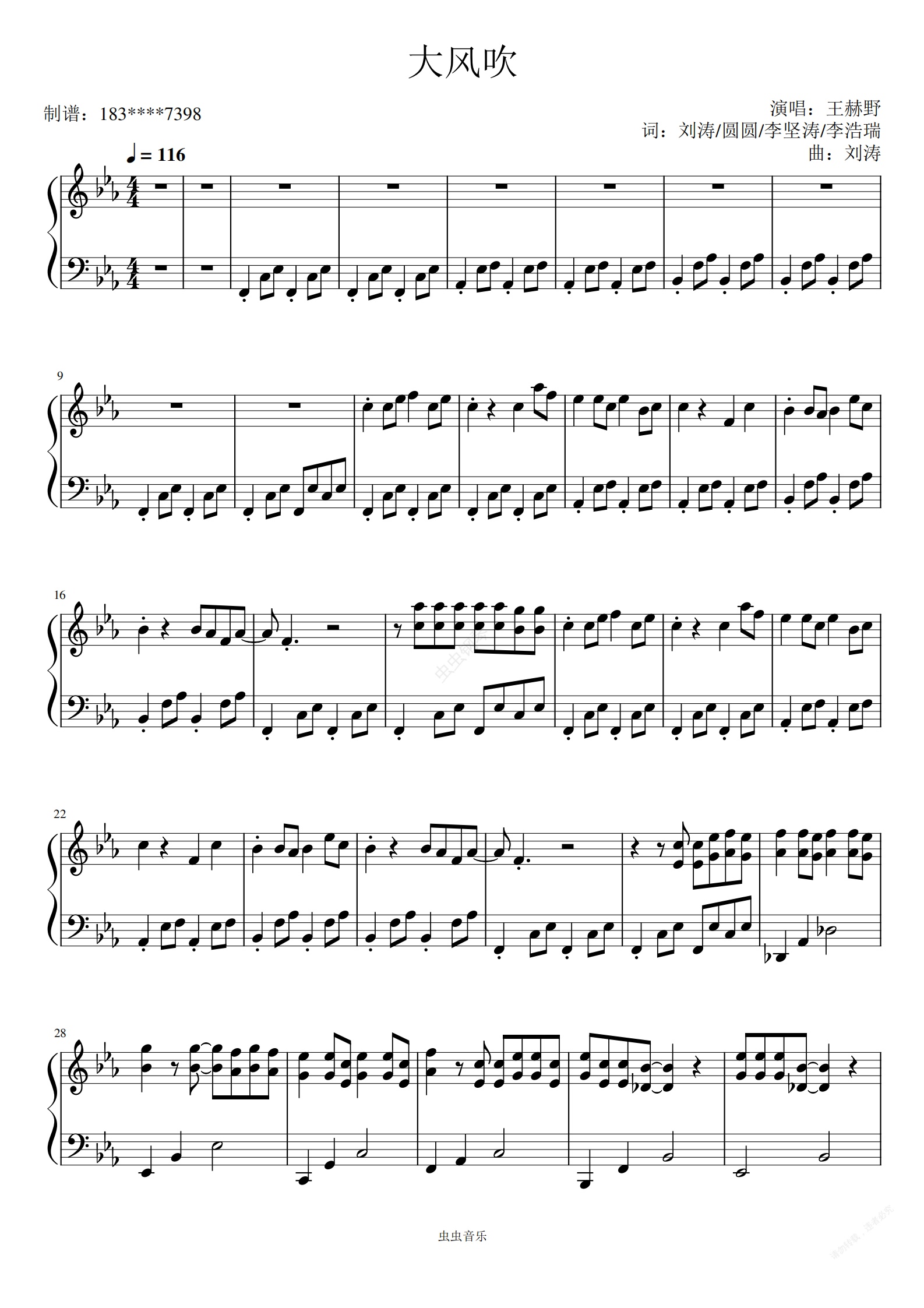 钢琴谱:大风吹最新改编入门简单好听 原调 #G
