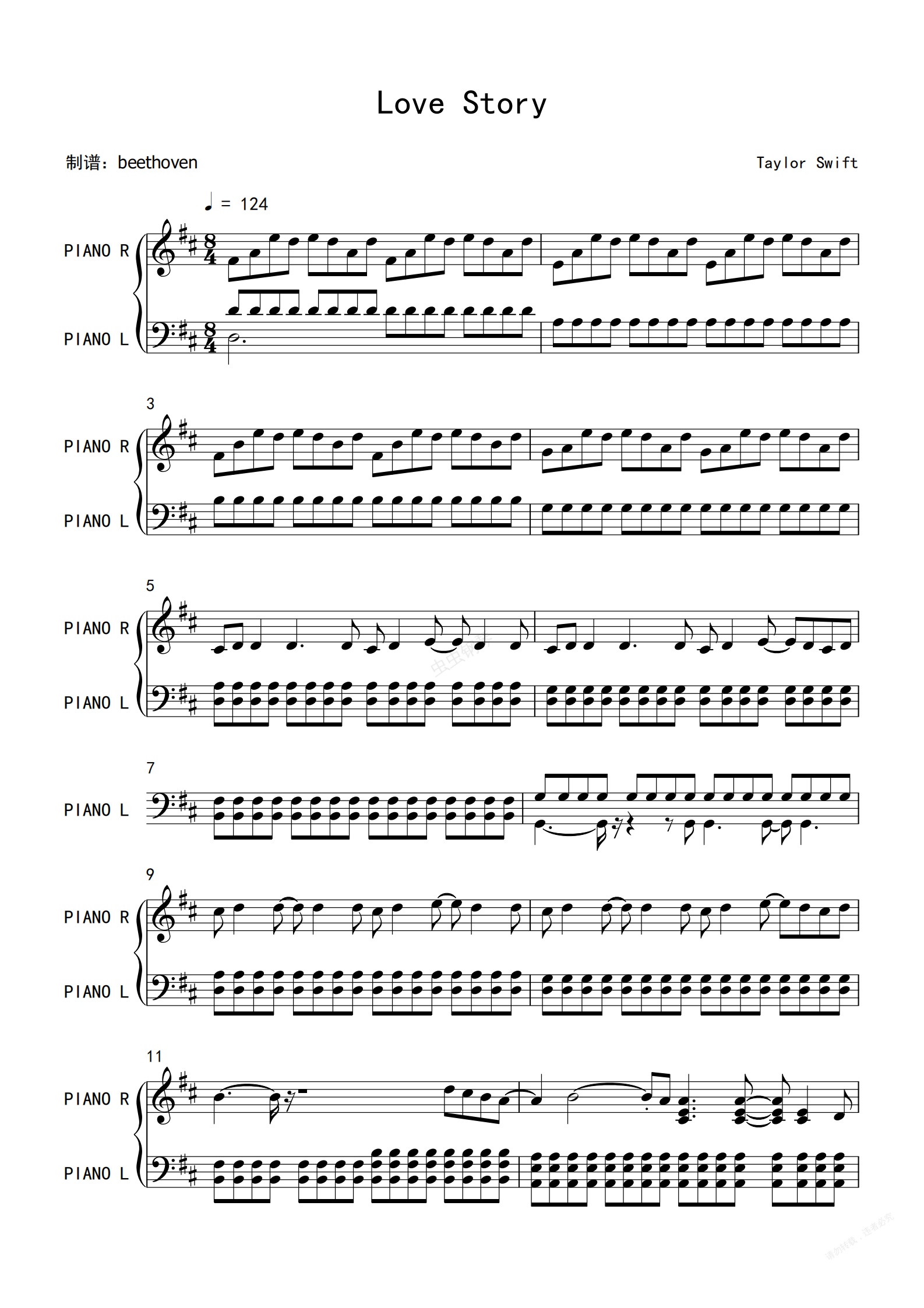钢琴谱:Love Story_钢琴独奏 泰勒·斯威夫特