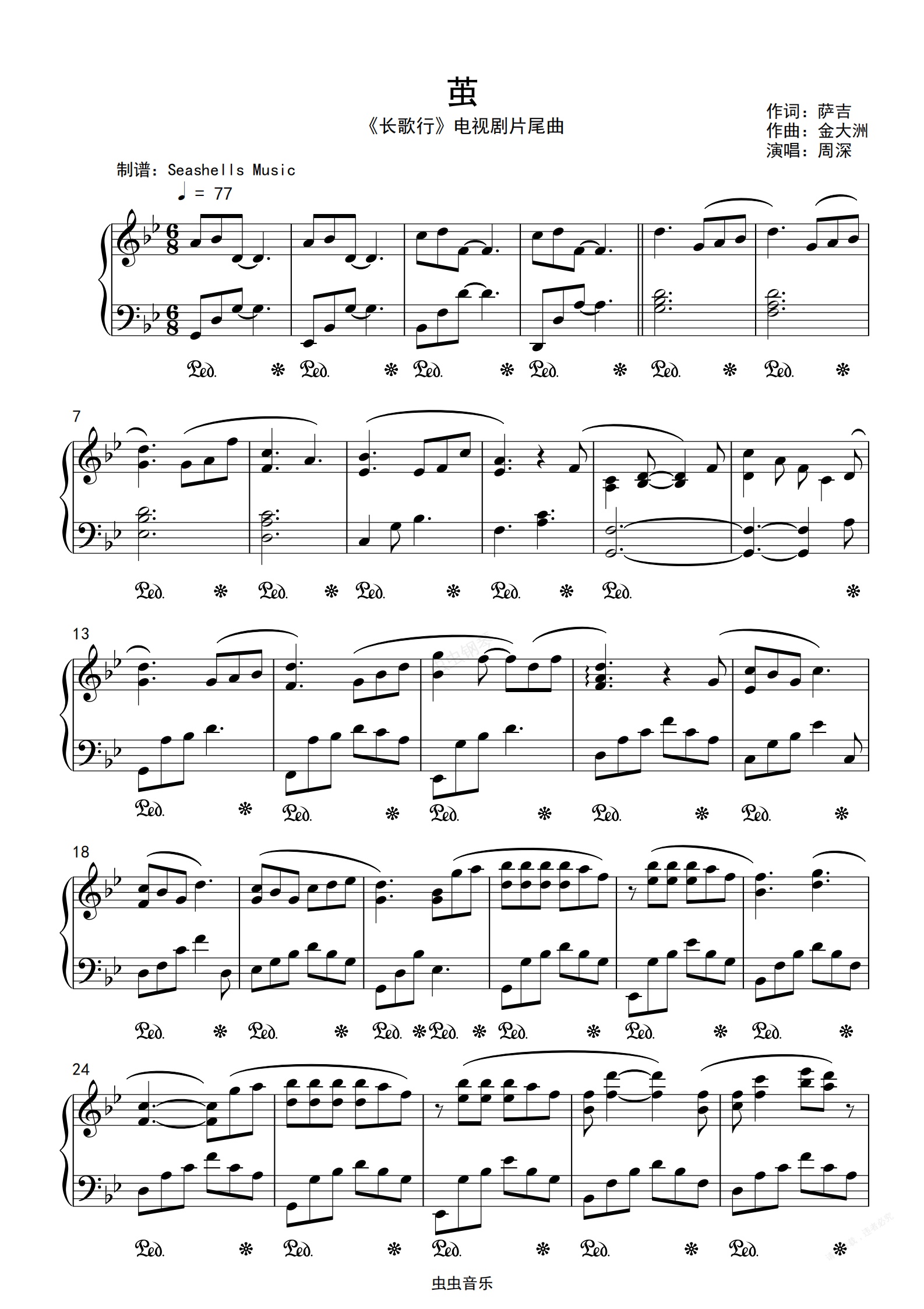 钢琴谱:周深-《茧》长歌行片尾曲 精编钢琴独奏