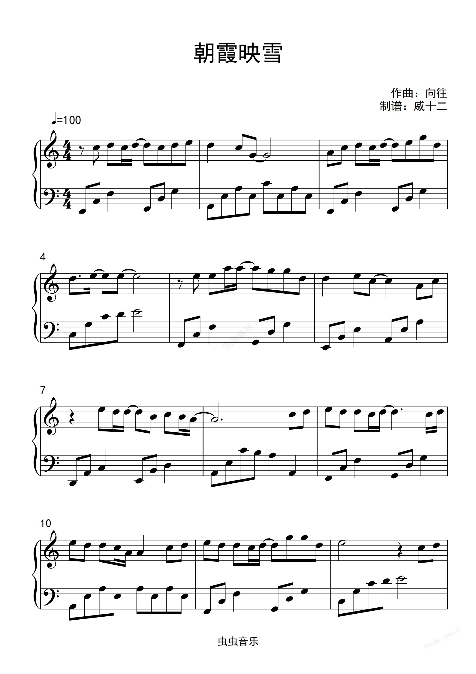 钢琴谱:朝霞映雪《问鹿三千》角色曲-C调简单版