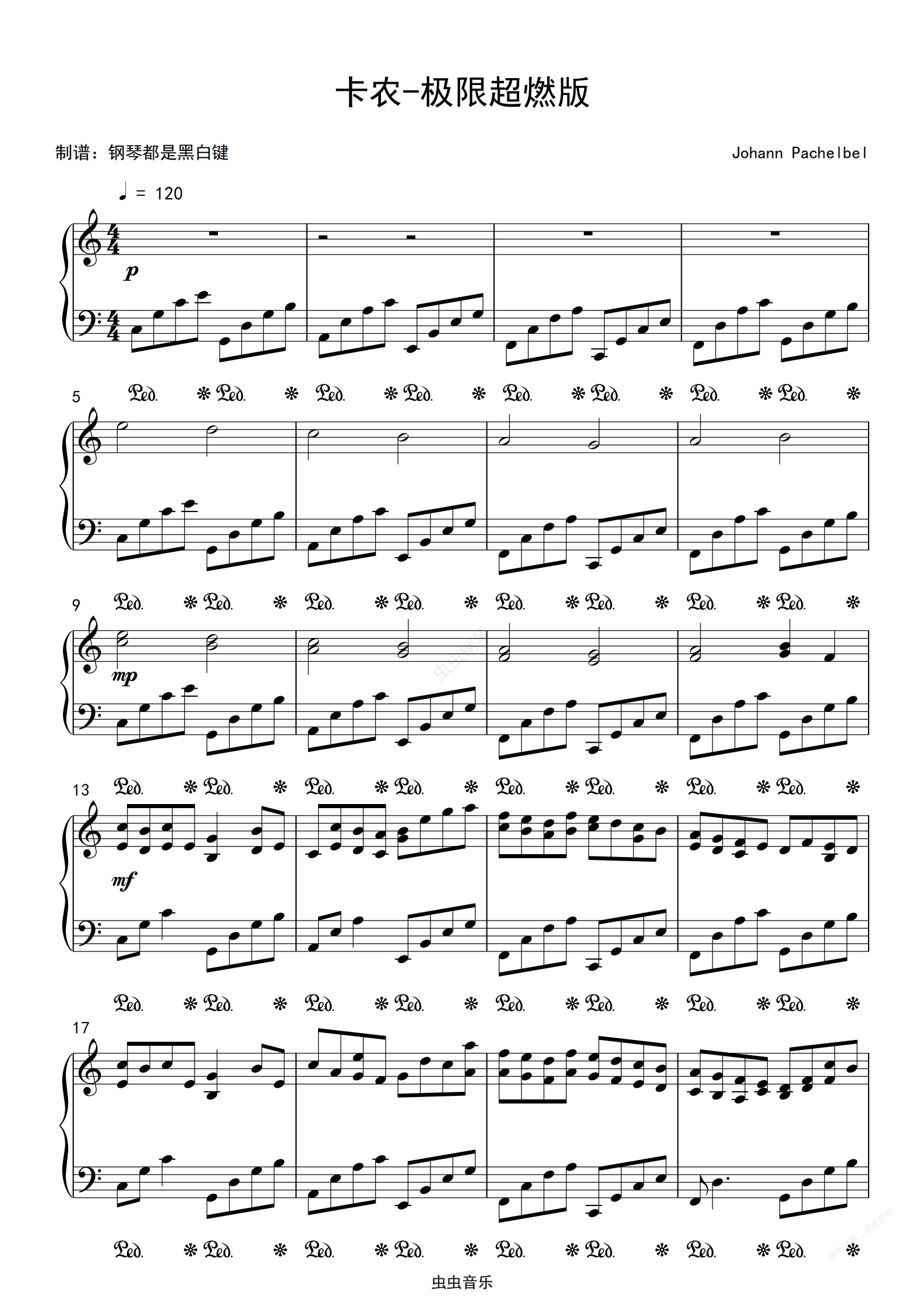 钢琴谱:卡农-极限超燃版【学会就是这条街最帅】