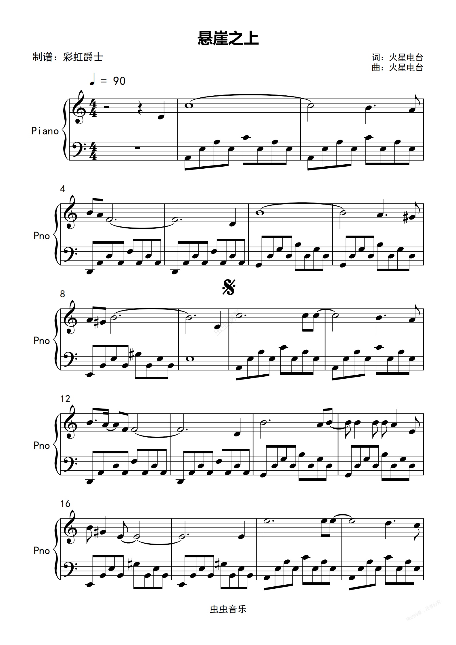 钢琴谱:悬崖之上-简单版-悬崖之上主题曲