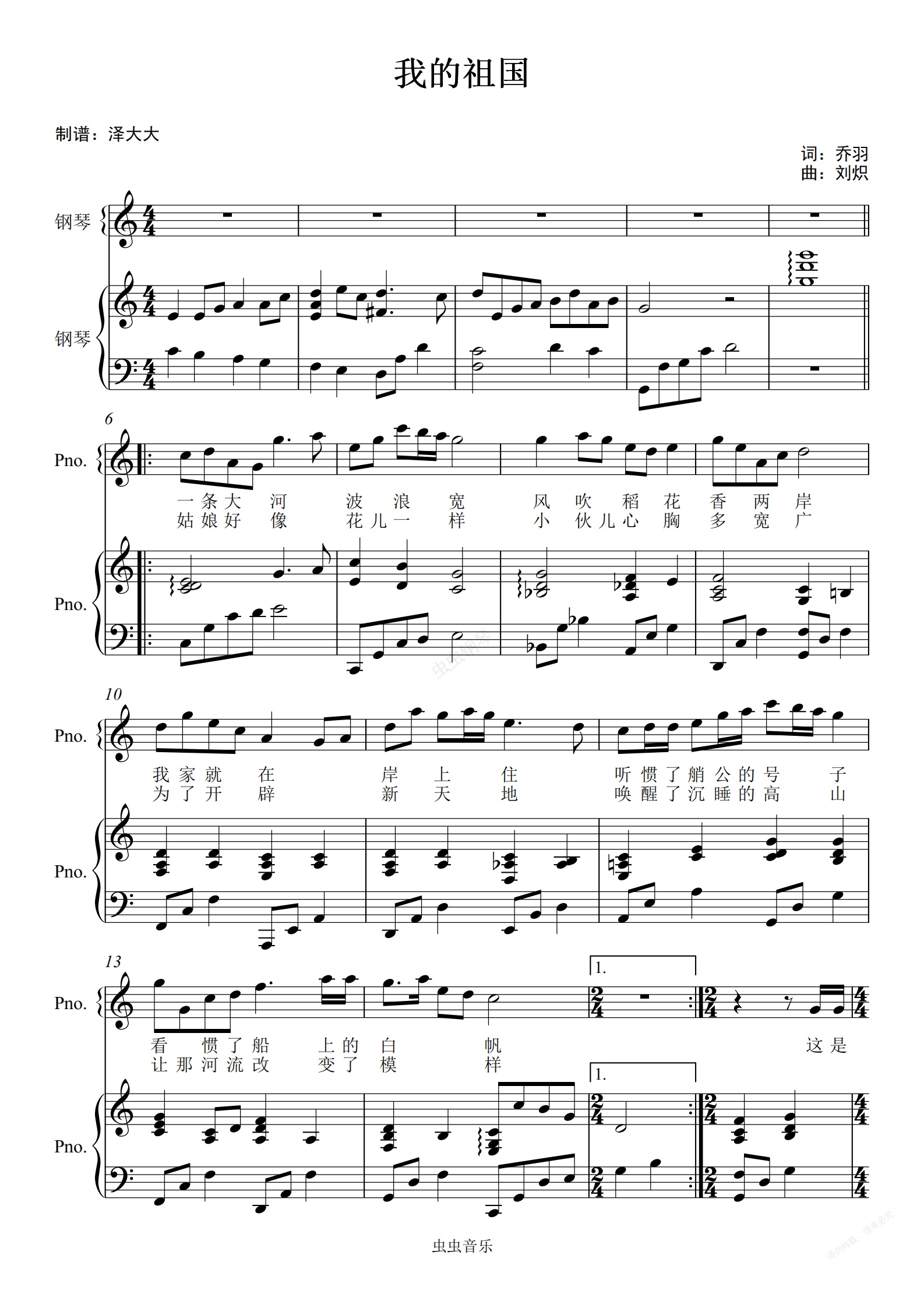 钢琴谱:我的祖国【现代编配超好听版】泽大大制