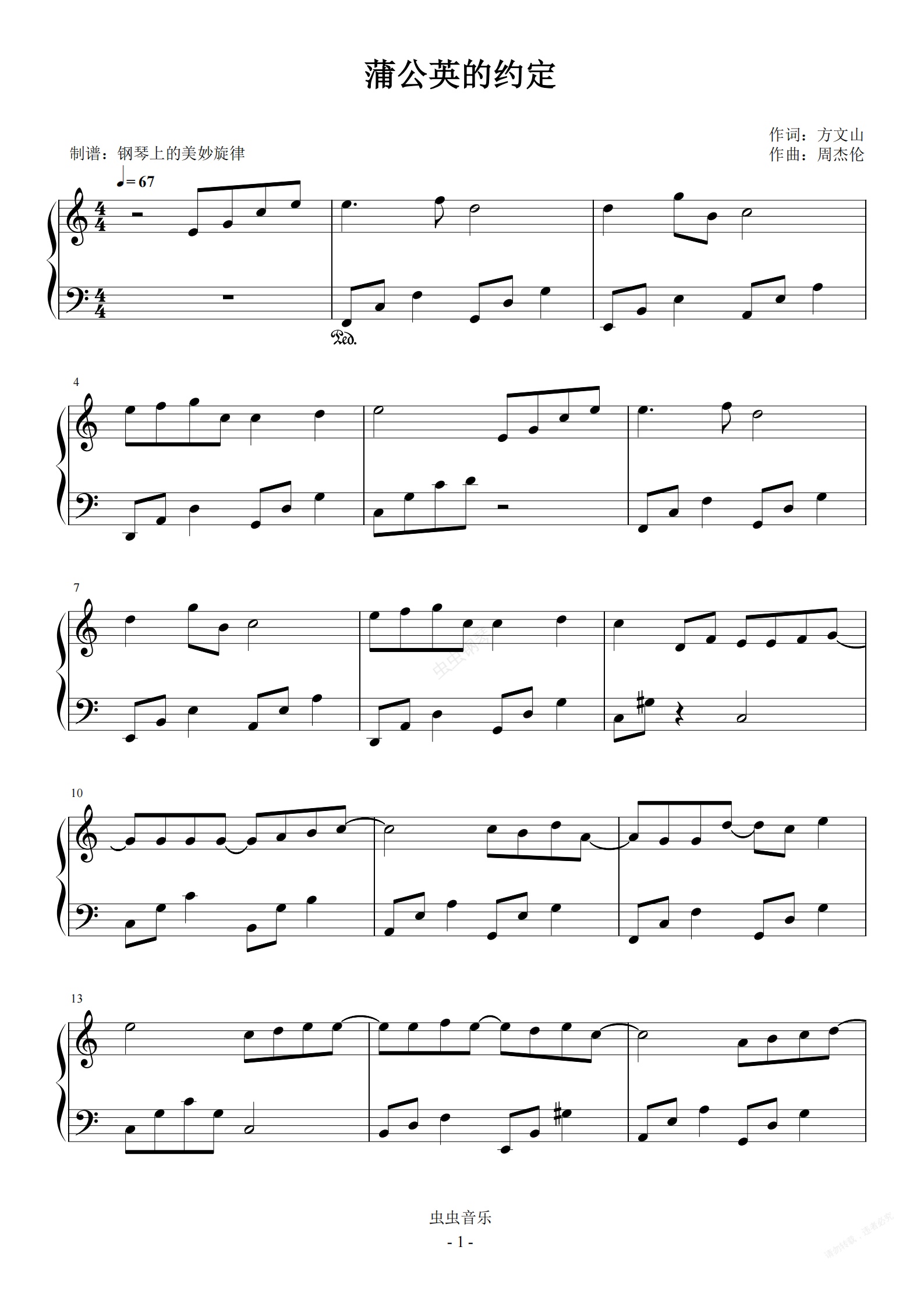 钢琴谱:蒲公英的约定 简易版 C调流行 带间奏